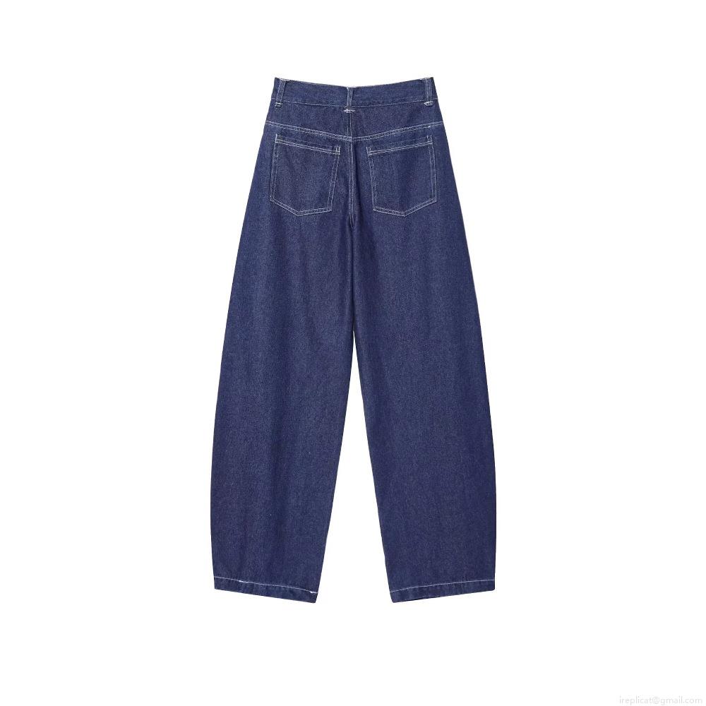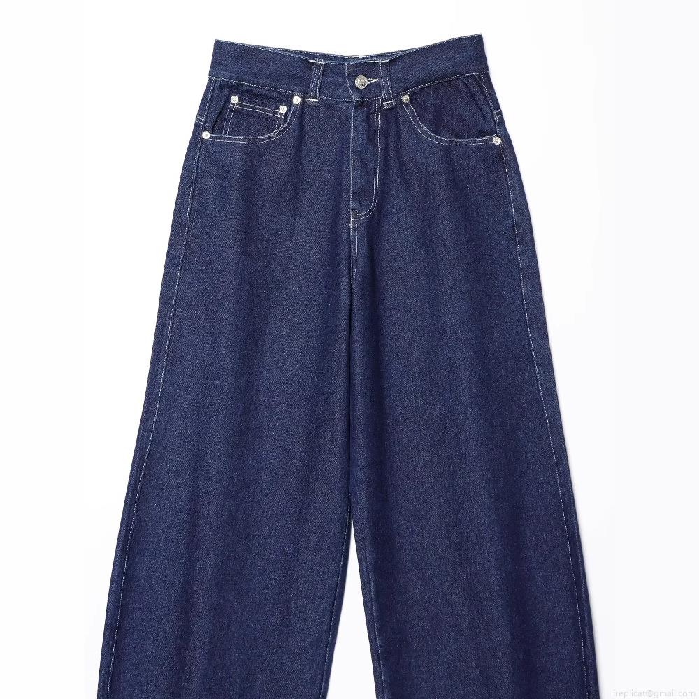 Solid Color, Wide-leg, Contrasting Colors And Prominent Lines, Five-pocket Design, White Contrasting Stripes