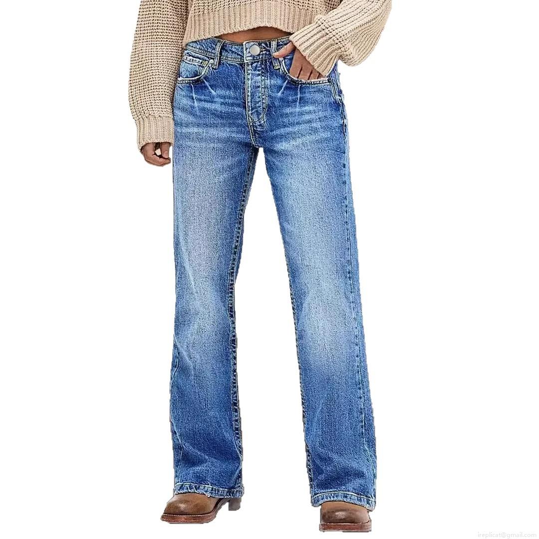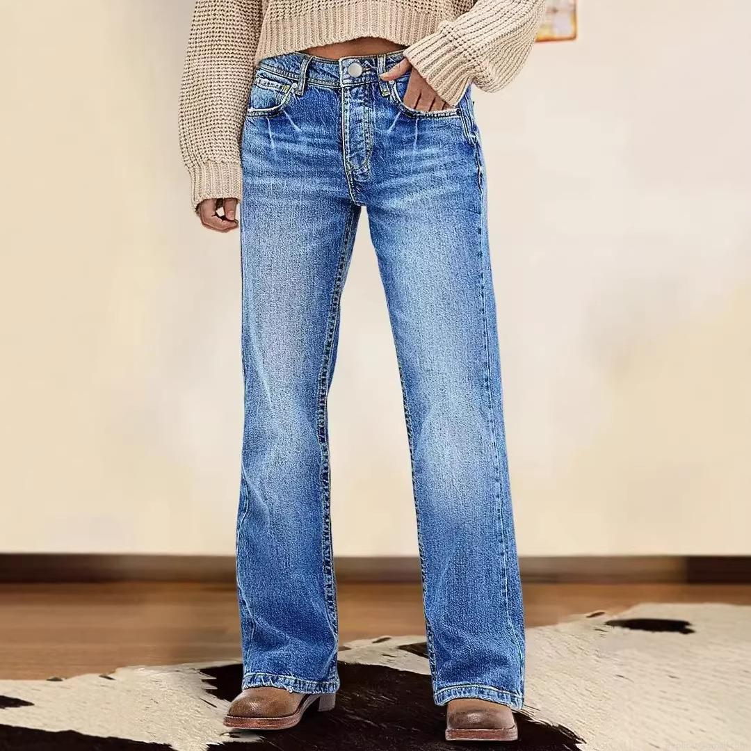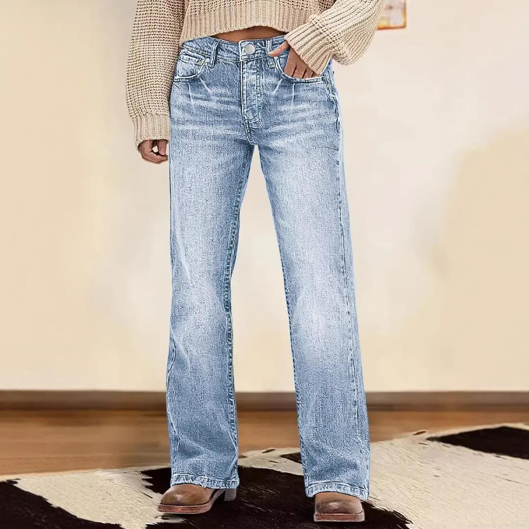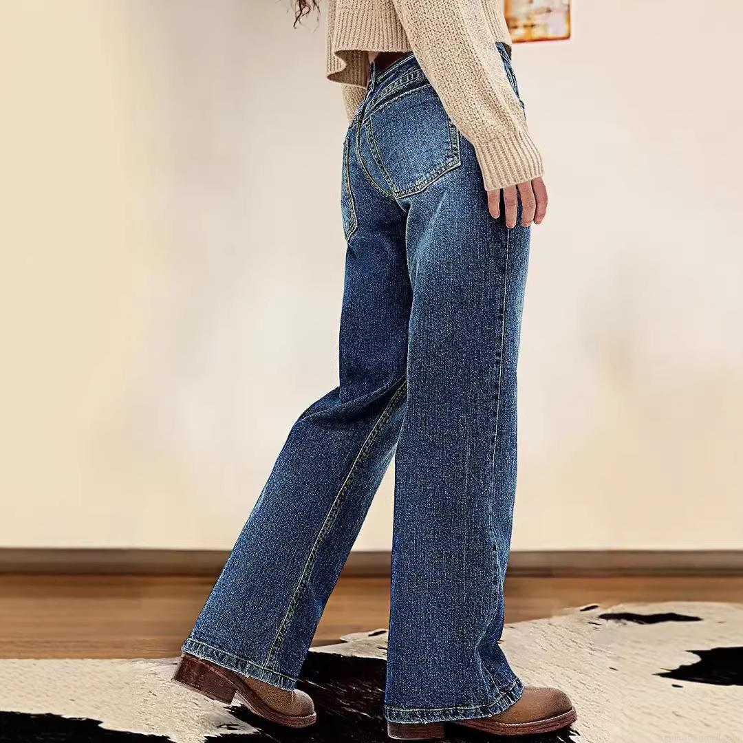 • Women's Retro High Waisted Wide Leg Jeans Cotton Blend Washed Denim Straight Trousers For Casual Office Streetwear Slimming Loose Pants