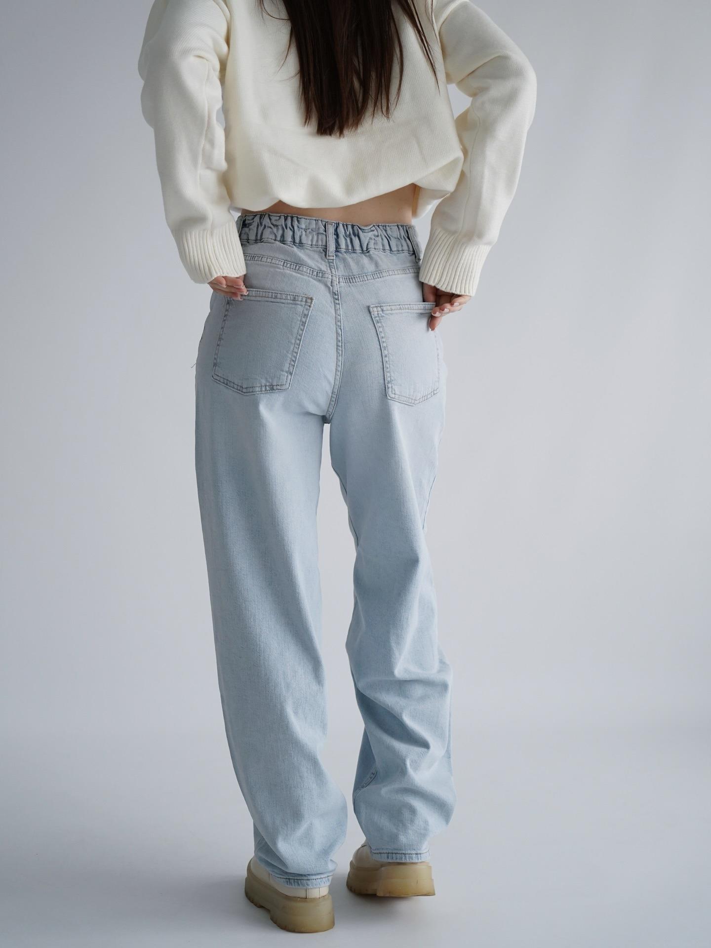 • Women's Retro Washed Wide Leg Jeans Classic Light Blue 100% Cotton Denim Pants With Elastic Back Waist Streetwear Baggy Trousers