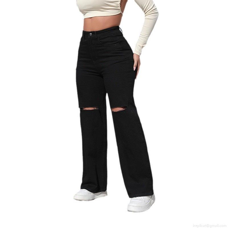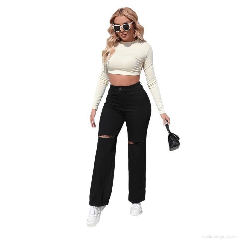 Solid Color, Water Wash, Hole, Frosted, Rough Edges, Micro-horn