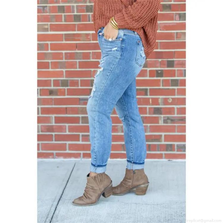 Women's Ripped Skinny Jeans Distressed Denim Pencil Pants Mid Waist Washed Blue Long Trousers Streetwear For Women Casual Daily Wear