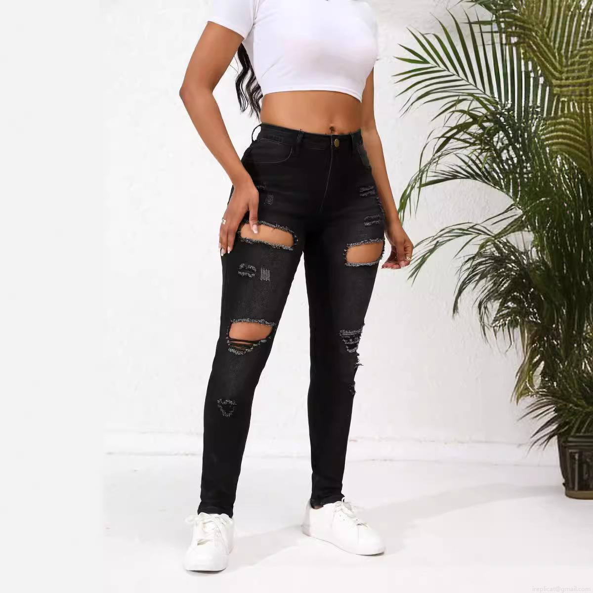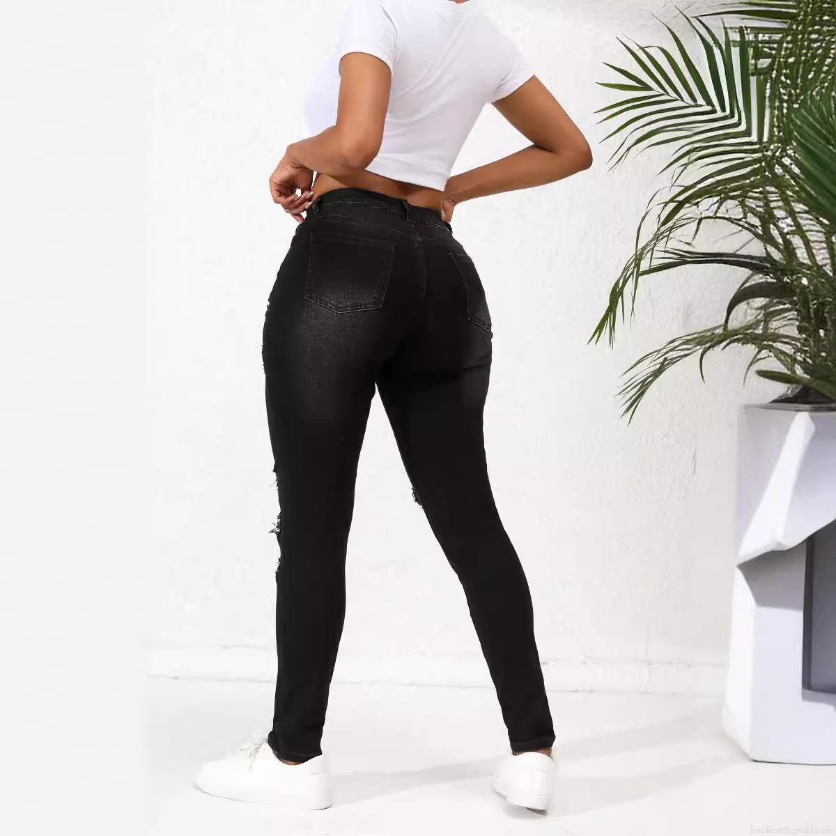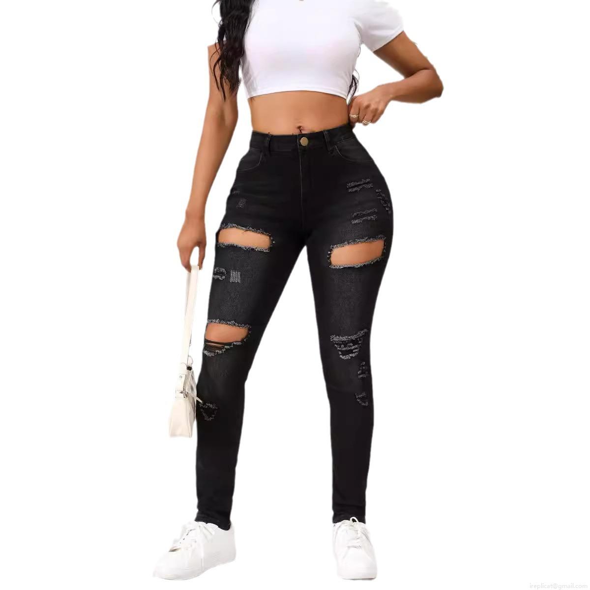 • Women's Ripped Skinny Jeans High Stretch Distressed Denim Pants Slim Fit Black Grey Streetwear Style Cotton Blend Long Trousers For Women
