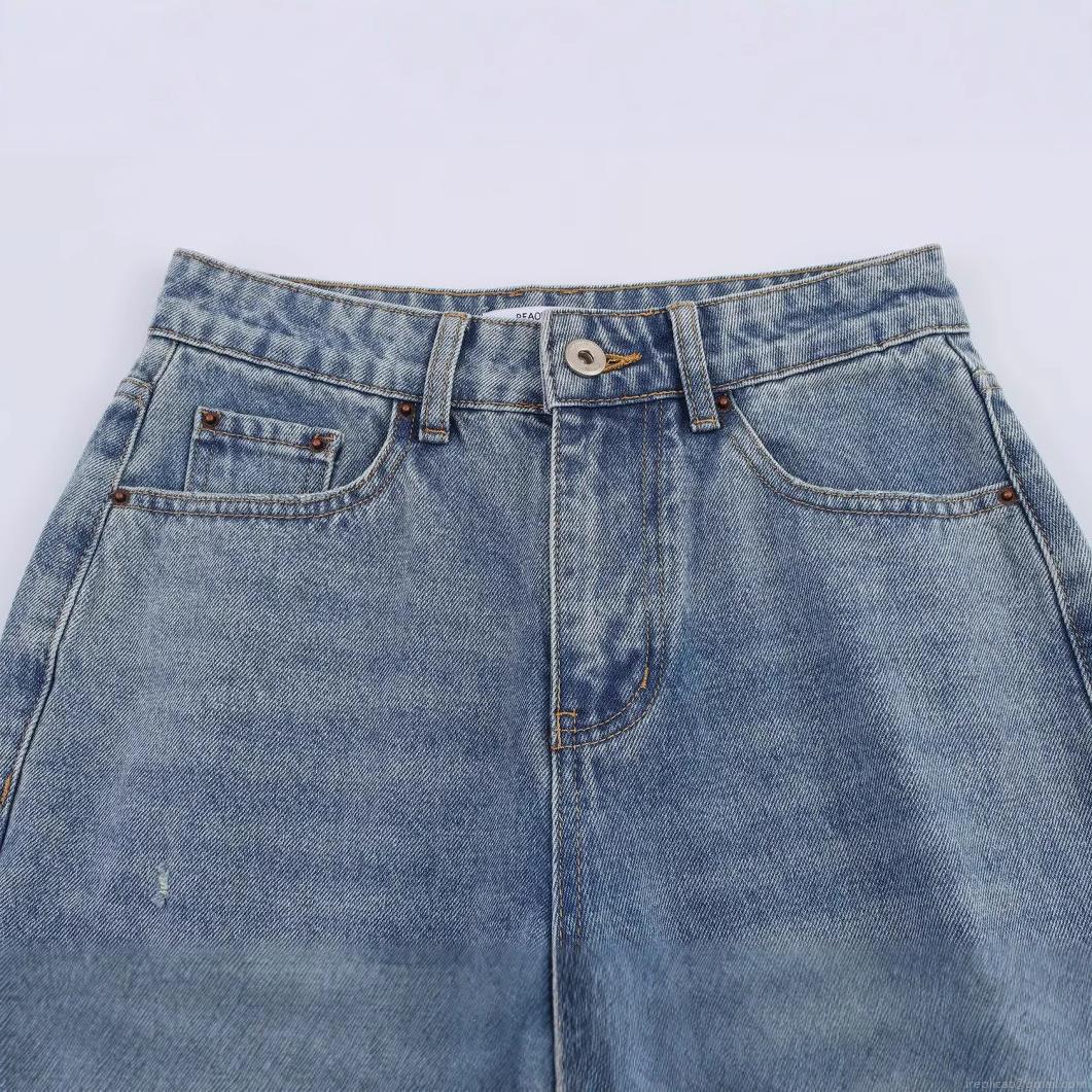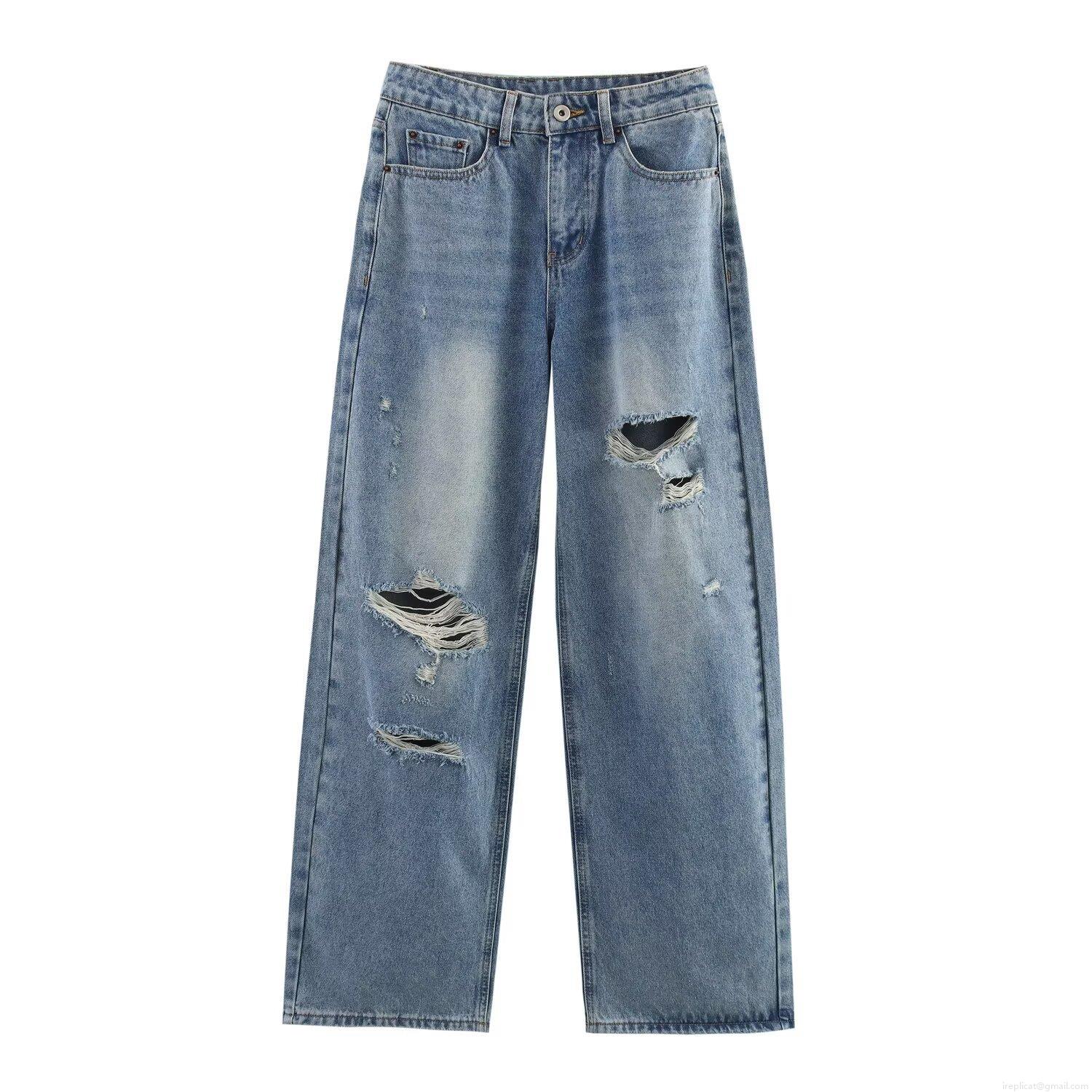 • Women's Ripped Wide Leg Denim Jeans High Waisted Distressed Washed Cotton Straight Leg Trousers for Streetwear Summer Casual Fashion Loose Pants
