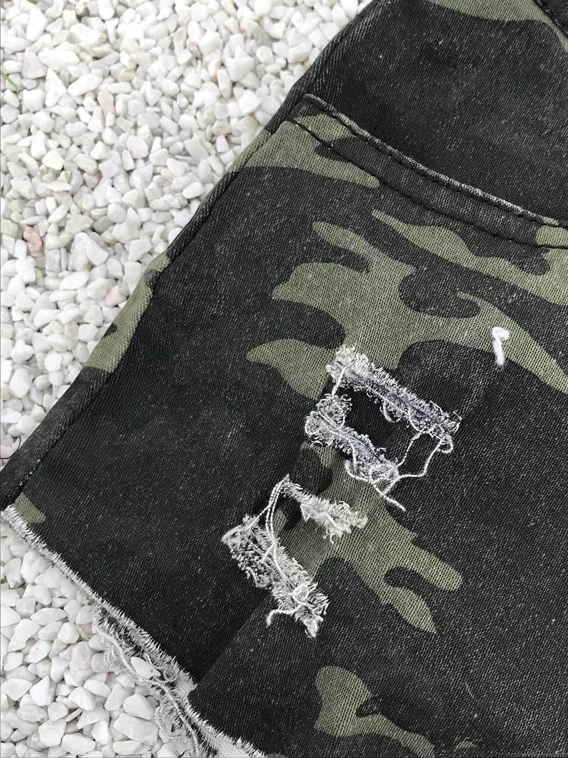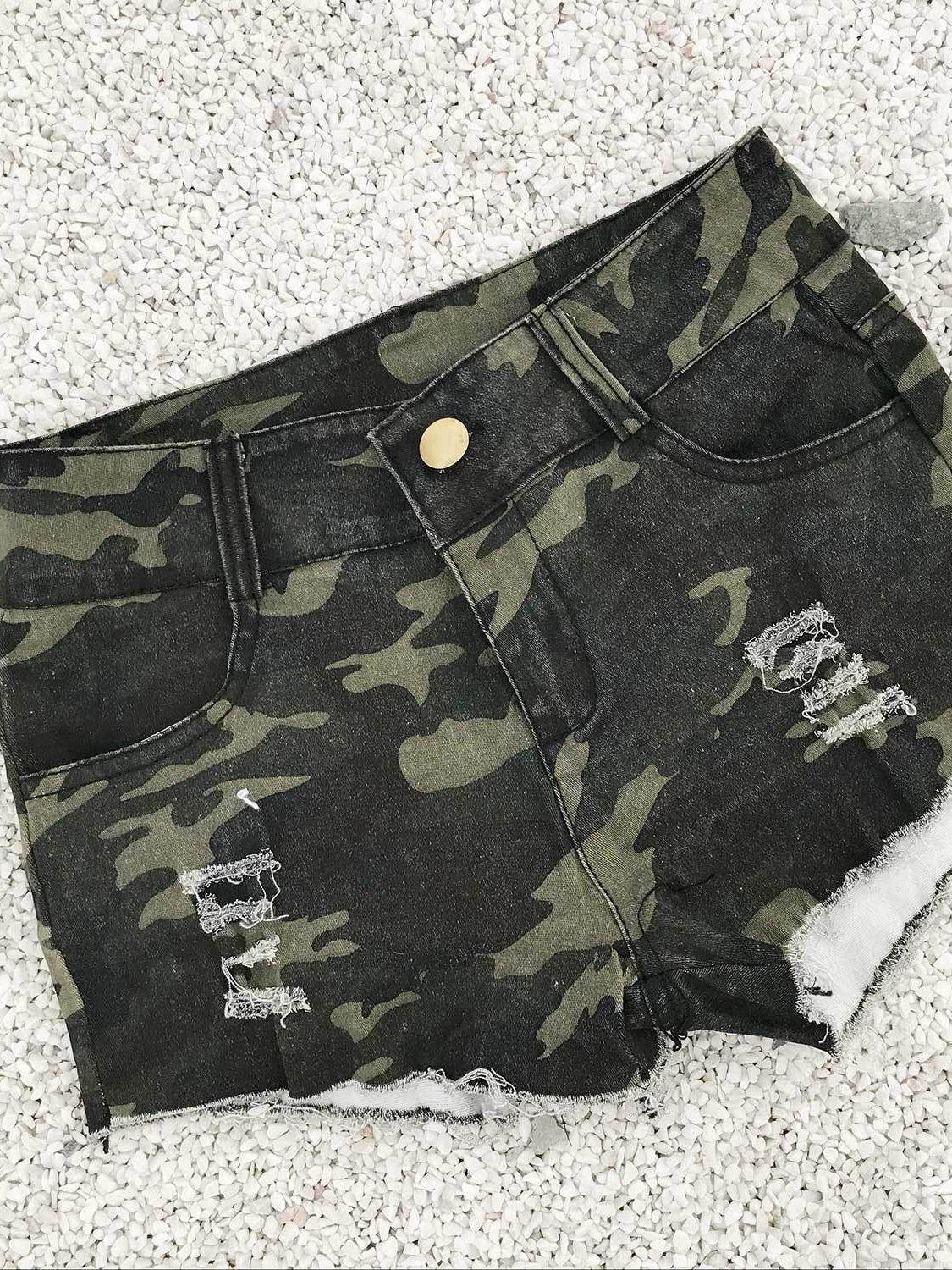 Women's Sexy High Waisted Camouflage Denim Shorts Distressed Ripped Mini Hot Pants With Frayed Hem Summer Streetwear Cotton Blend Jean Shorts