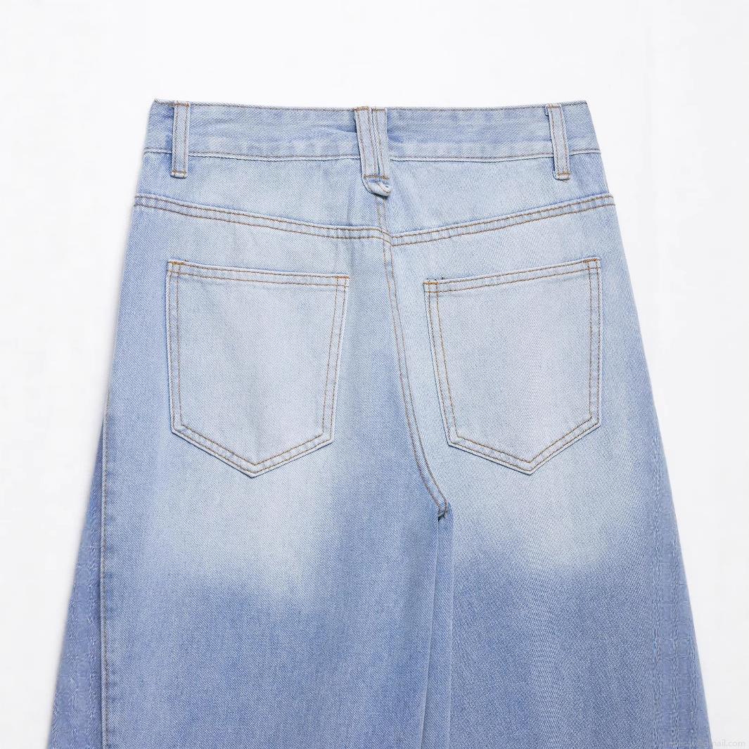 • Women's Splicing Wide Leg Jeans Contrast Color Patchwork High Waist Denim Trousers With Frayed Hem Streetwear Casual Loose Pants For Women