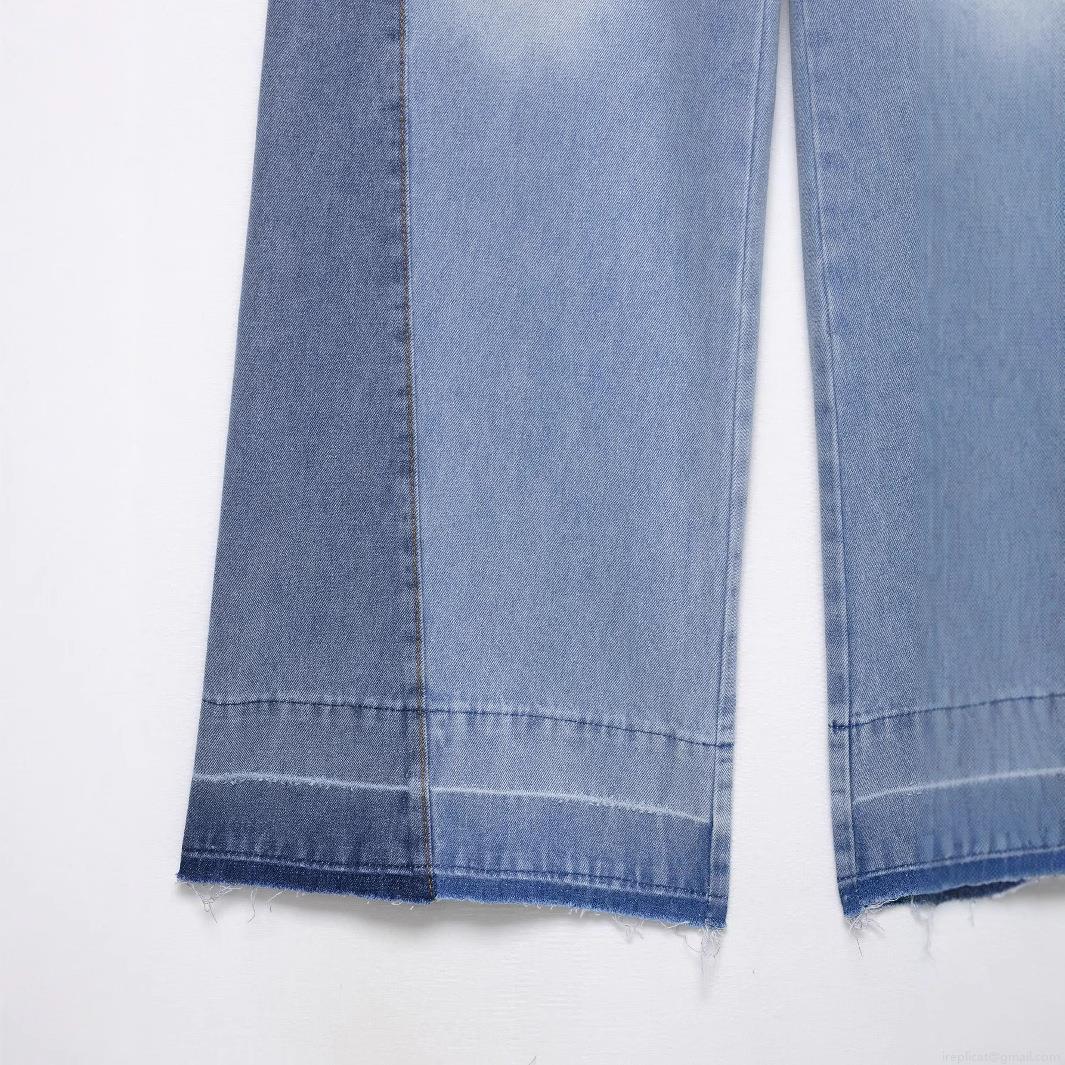 Women's Splicing Wide Leg Jeans Contrast Color Patchwork High Waist Denim Trousers With Frayed Hem Streetwear Casual Loose Pants For Women