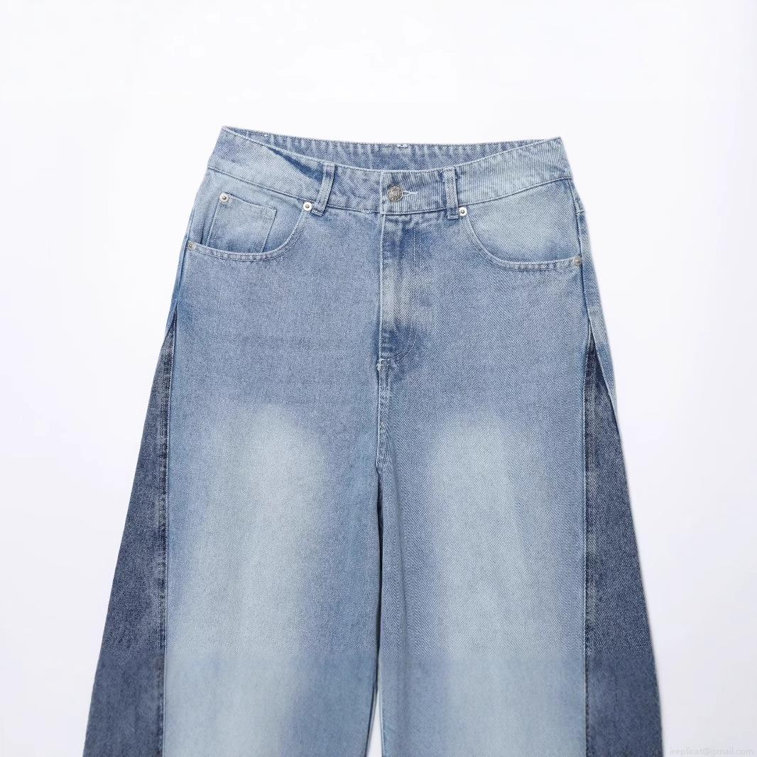• Women's Vintage Contrast Patchwork Wide Leg Denim Jeans High Waisted Cotton Straight Loose Trousers For Streetwear Casual Daily Lady Fashion