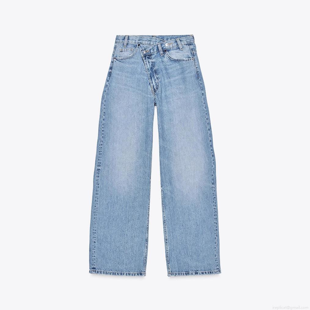 Solid Color, Zipper Decoration, Water Washing Process, Water Washing And Whitening, Asymmetrical Placket, Cross Waist