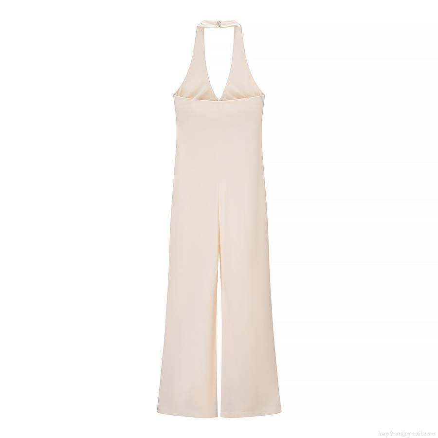 • Sexy Women Halter Neck Deep V Backless Jumpsuit Sleeveless Polyester Straight Leg Long Pants Solid Color Elegant Summer Party Clubwear Jumpsuit for Women