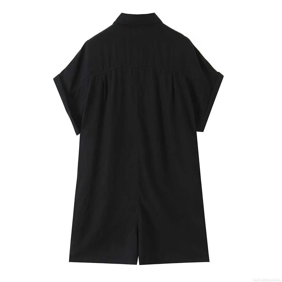 • Women's Casual Black Jumpsuit Playsuit Polyester Spandex Button Up Lapel Collar Pocket Short Sleeve One Piece Summer Outfit Romper For Daily Vacation Fashion
