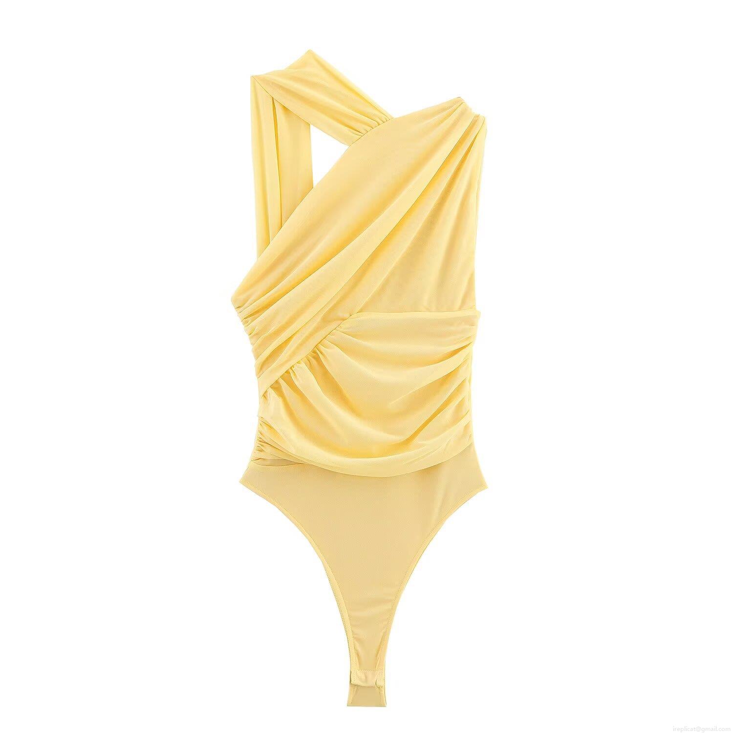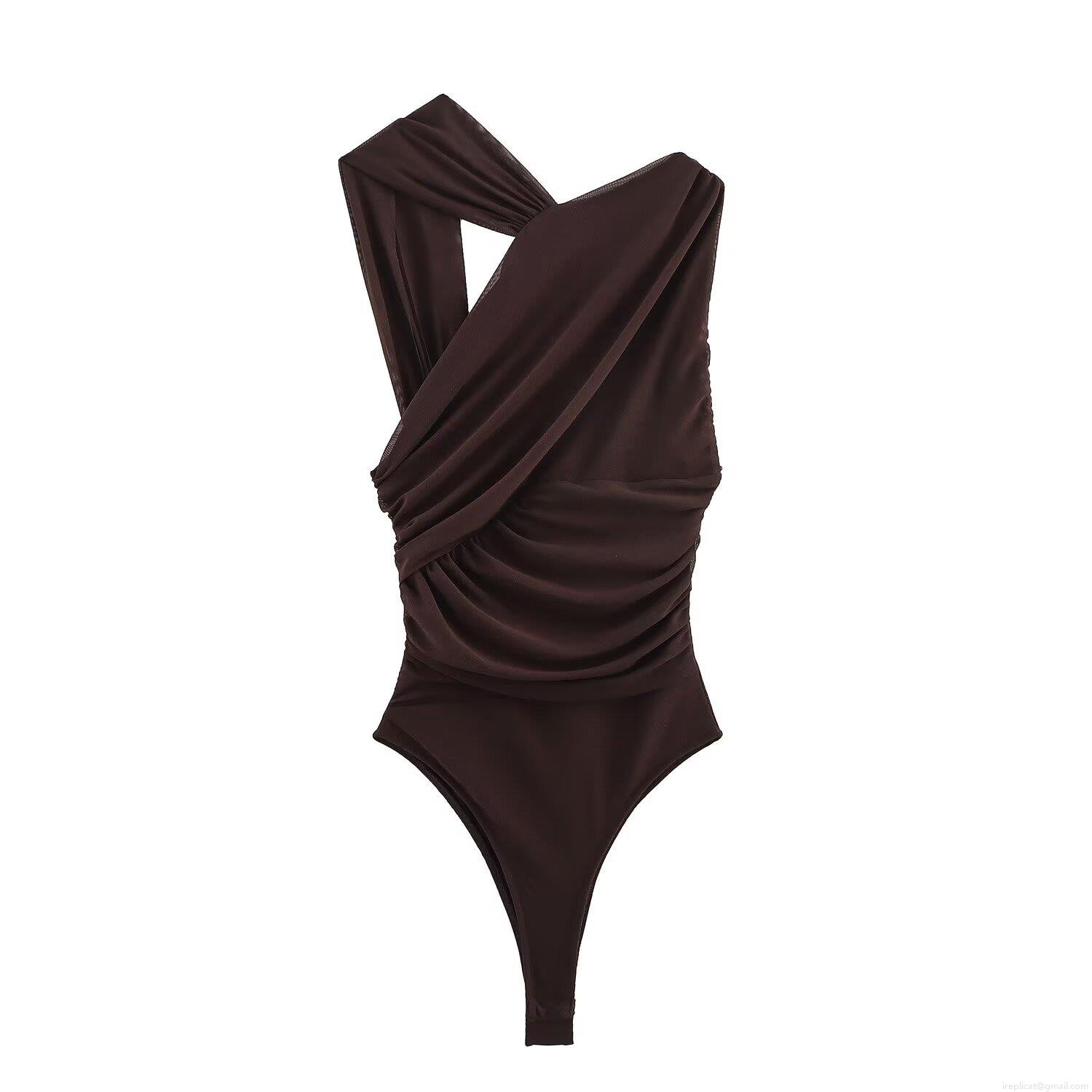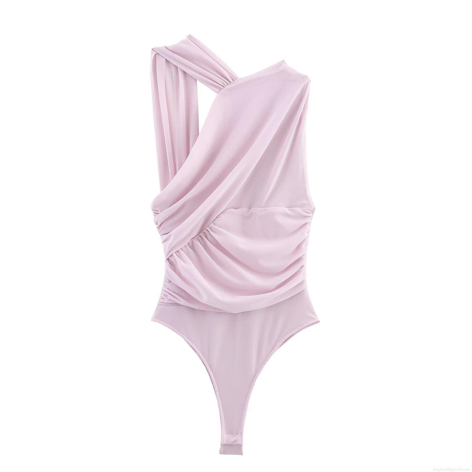 Solid Color, Splice, Leopard Print, One Shoulder, Floral Pattern, Pleats, Mesh, Backless