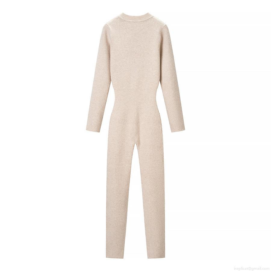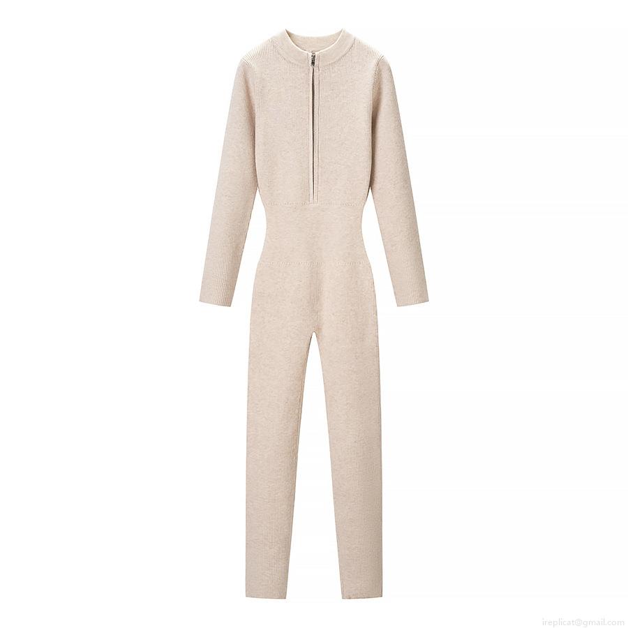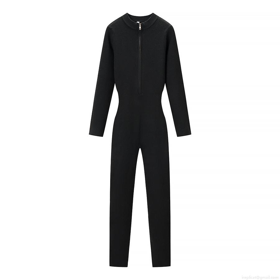 • Women's Ribbed Knit Long Sleeve Jumpsuit Half Zipper High Neck Slim Fit Full Length Bodysuit For Casual Party Streetwear