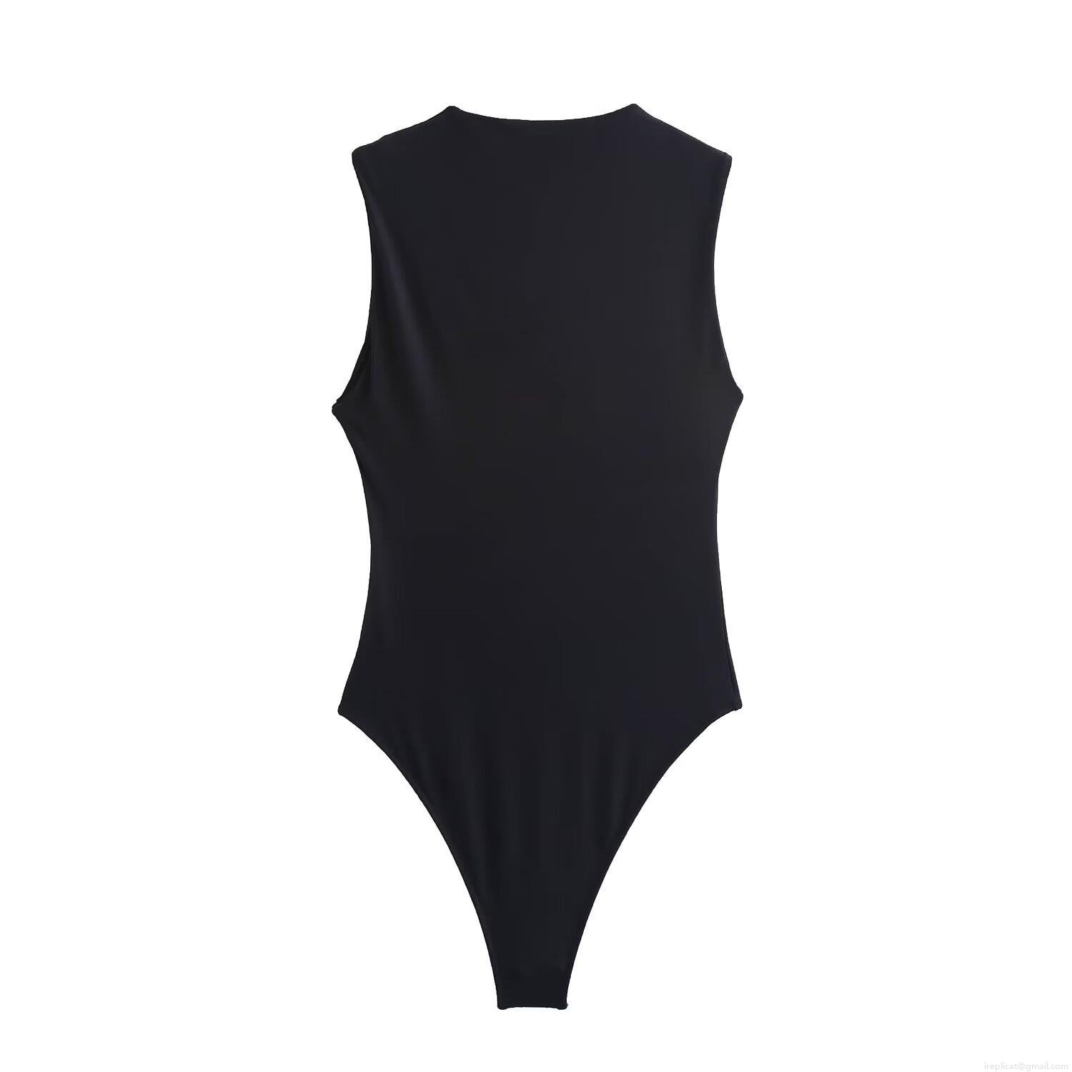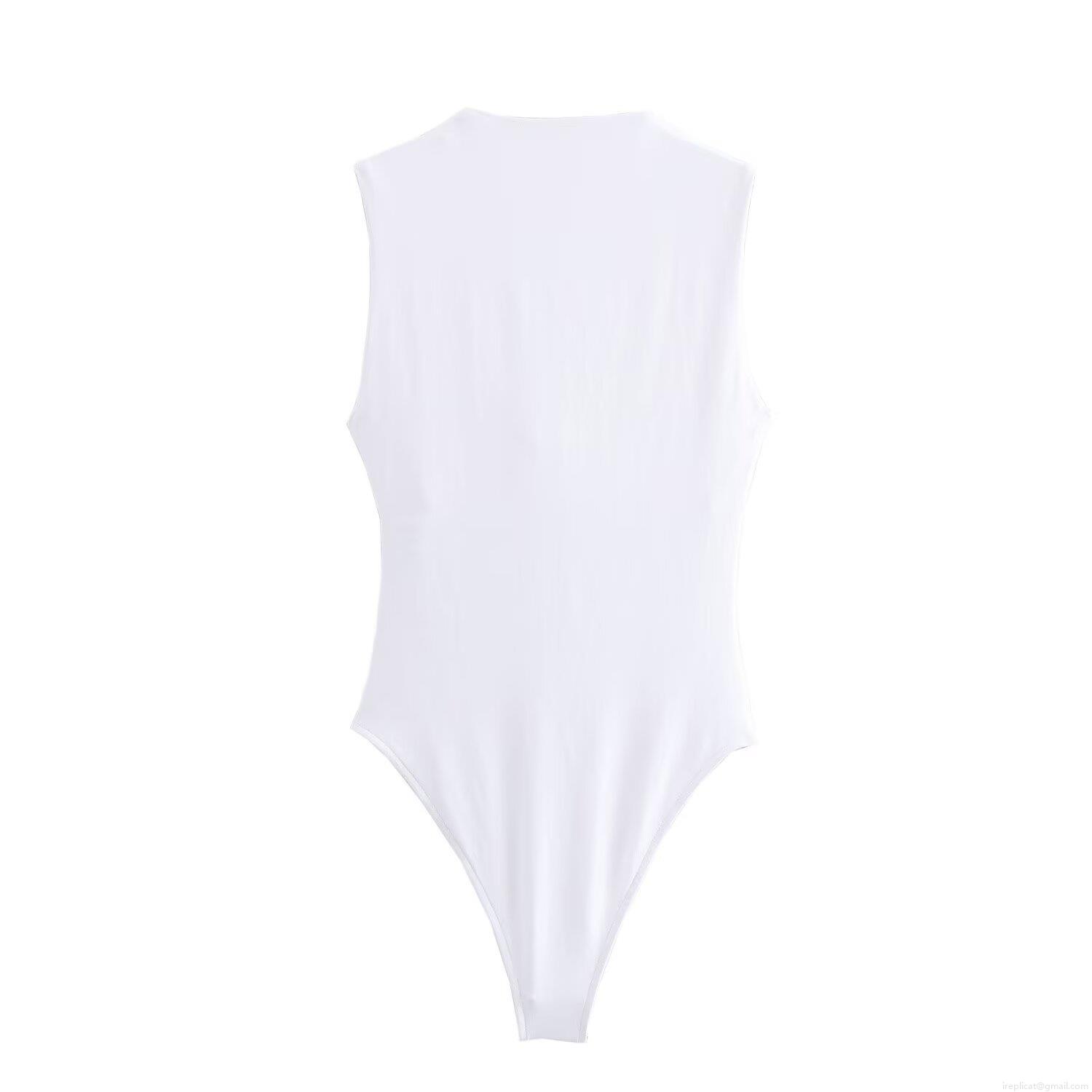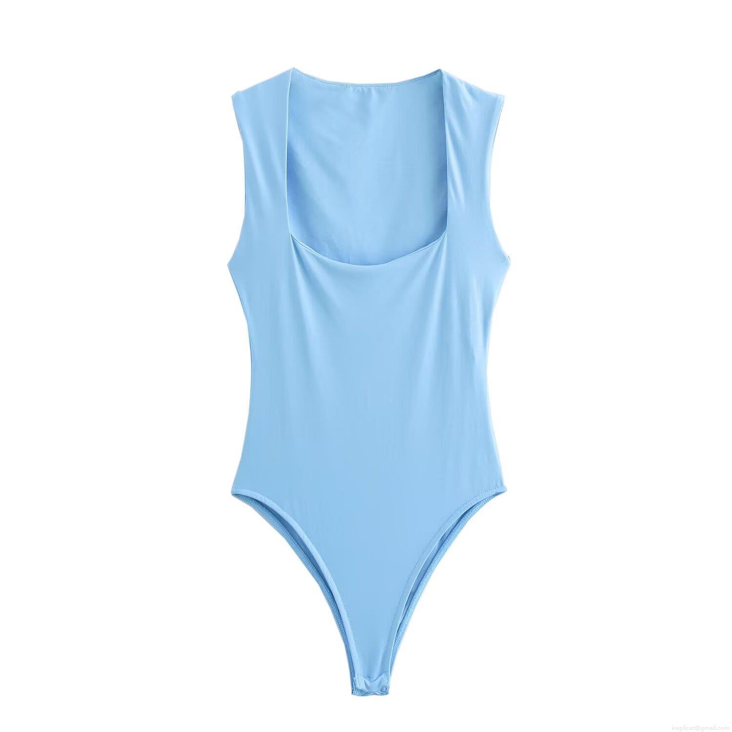 Solid Color, Splice, Sleeveless, Square Collar, Crotch Buckle