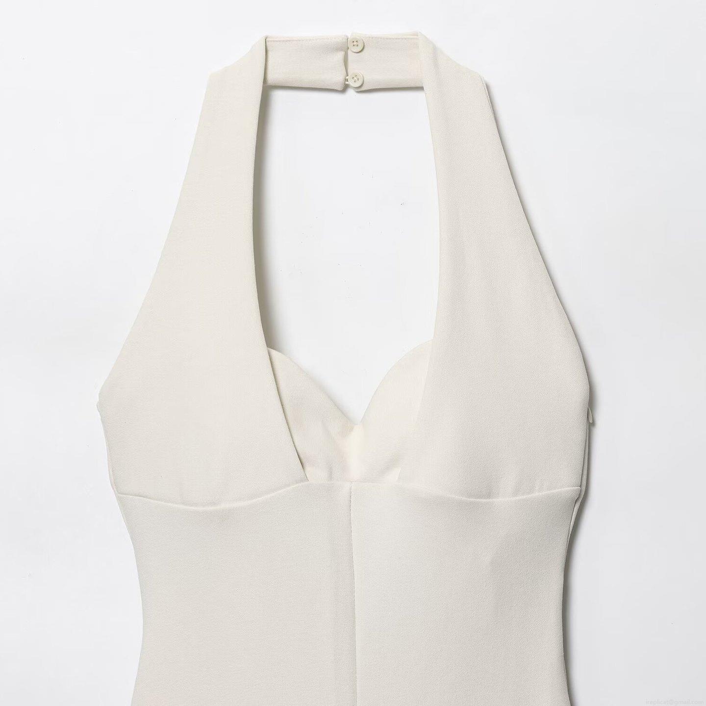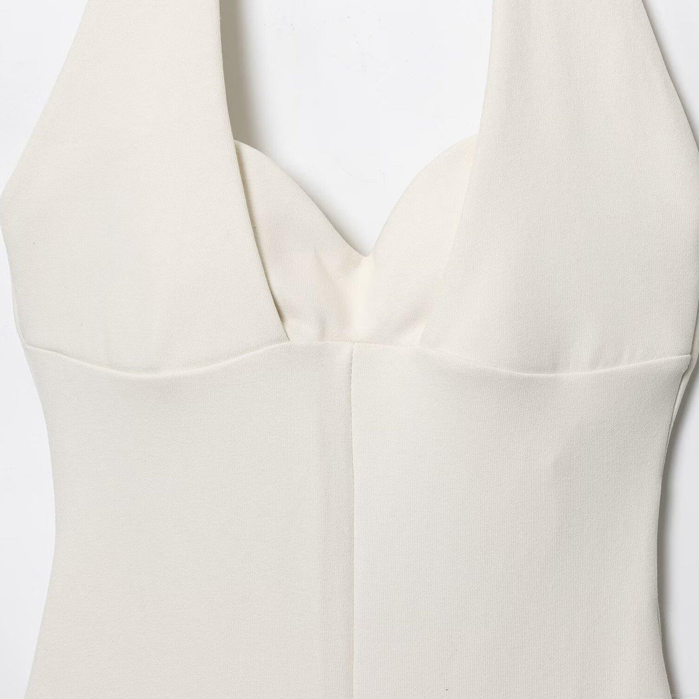 Solid Color, Neckband, Backless, Bell-bottoms, Deep V