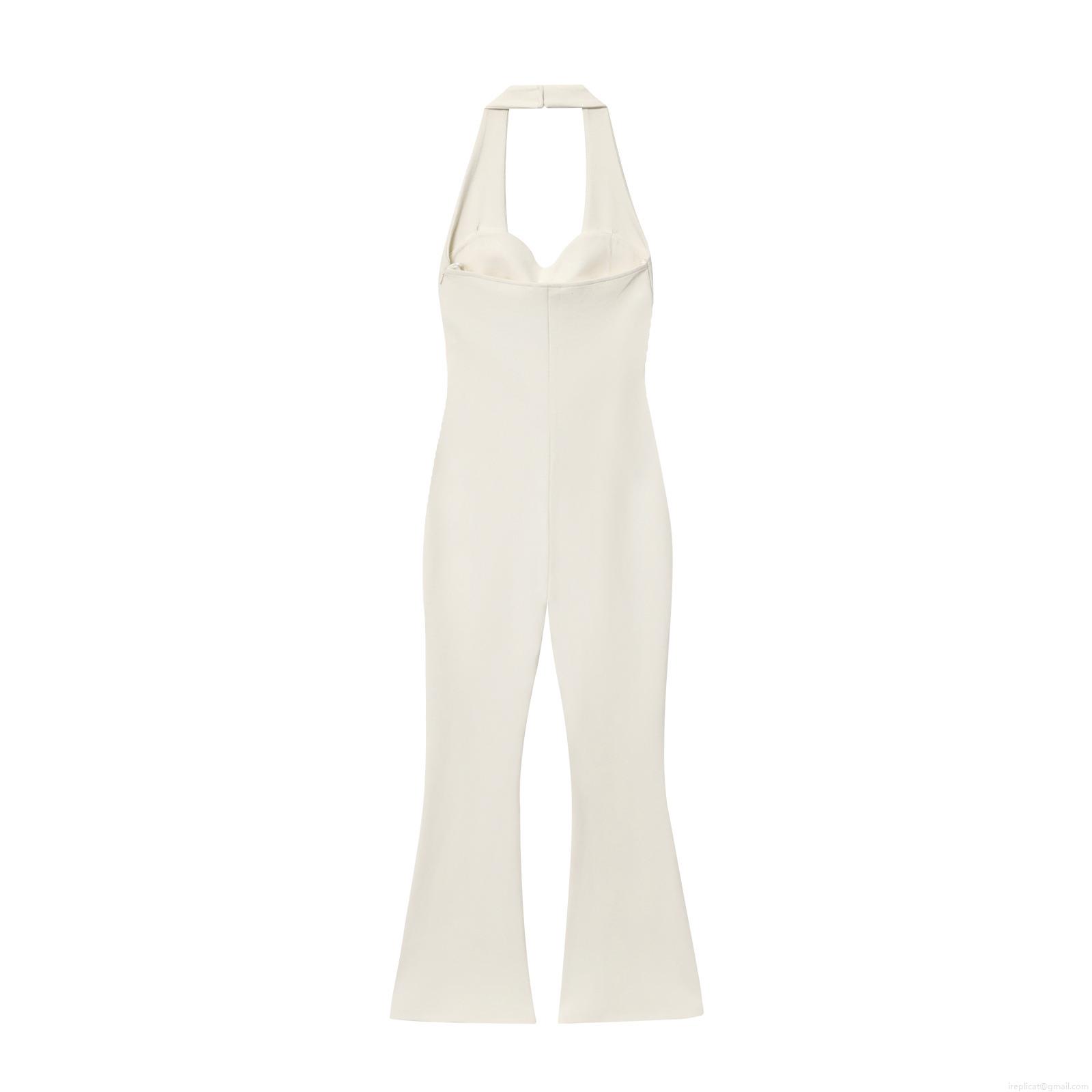Sexy Halter Neck Backless Flared Jumpsuit Women Elegant Deep V Neck Slim Fit Bell-Bottom One-Piece Bodysuit Polyester Spandex Evening Party Clubwear