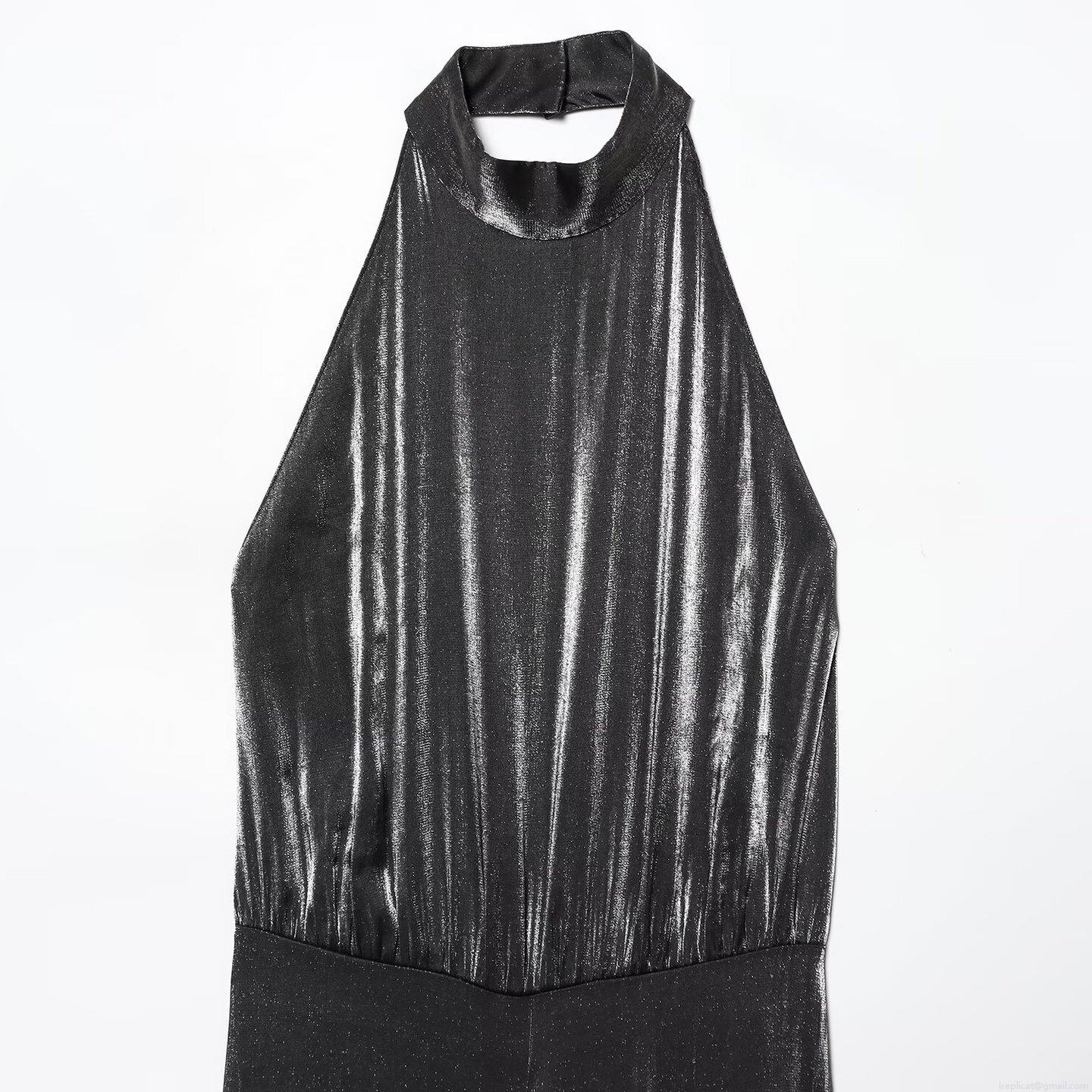Solid Color, Neckband, Backless, Wide-leg, Metallic Texture, Metallic Flash