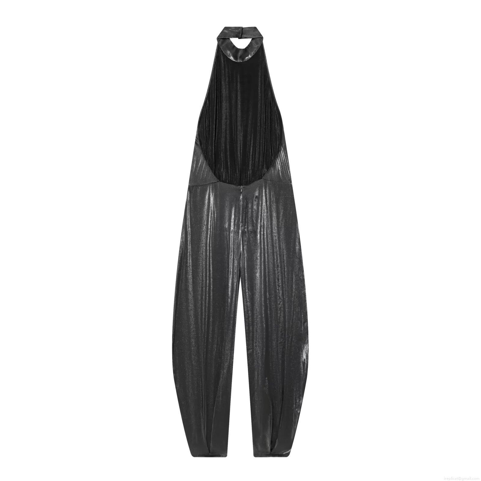 Sexy Halter Neck Backless Jumpsuit Metallic Shimmer Sleeveless Wide Leg Long Pants Party Clubwear Vacation Women Jumpsuits Rompers High Waist