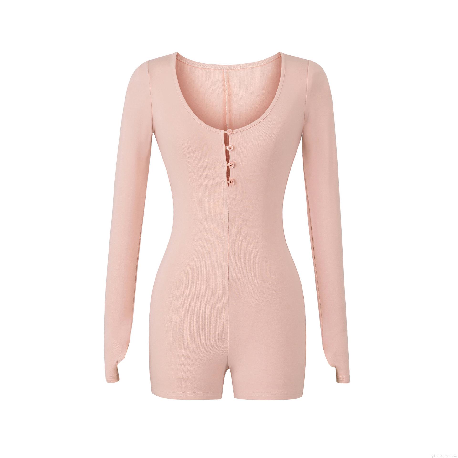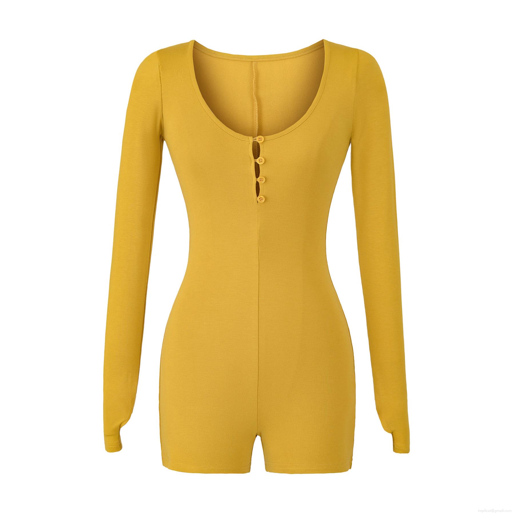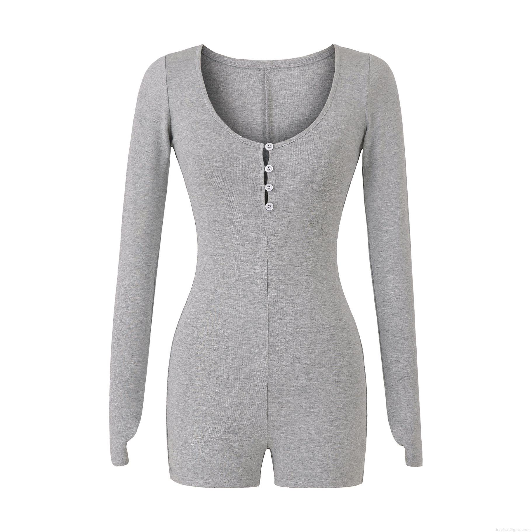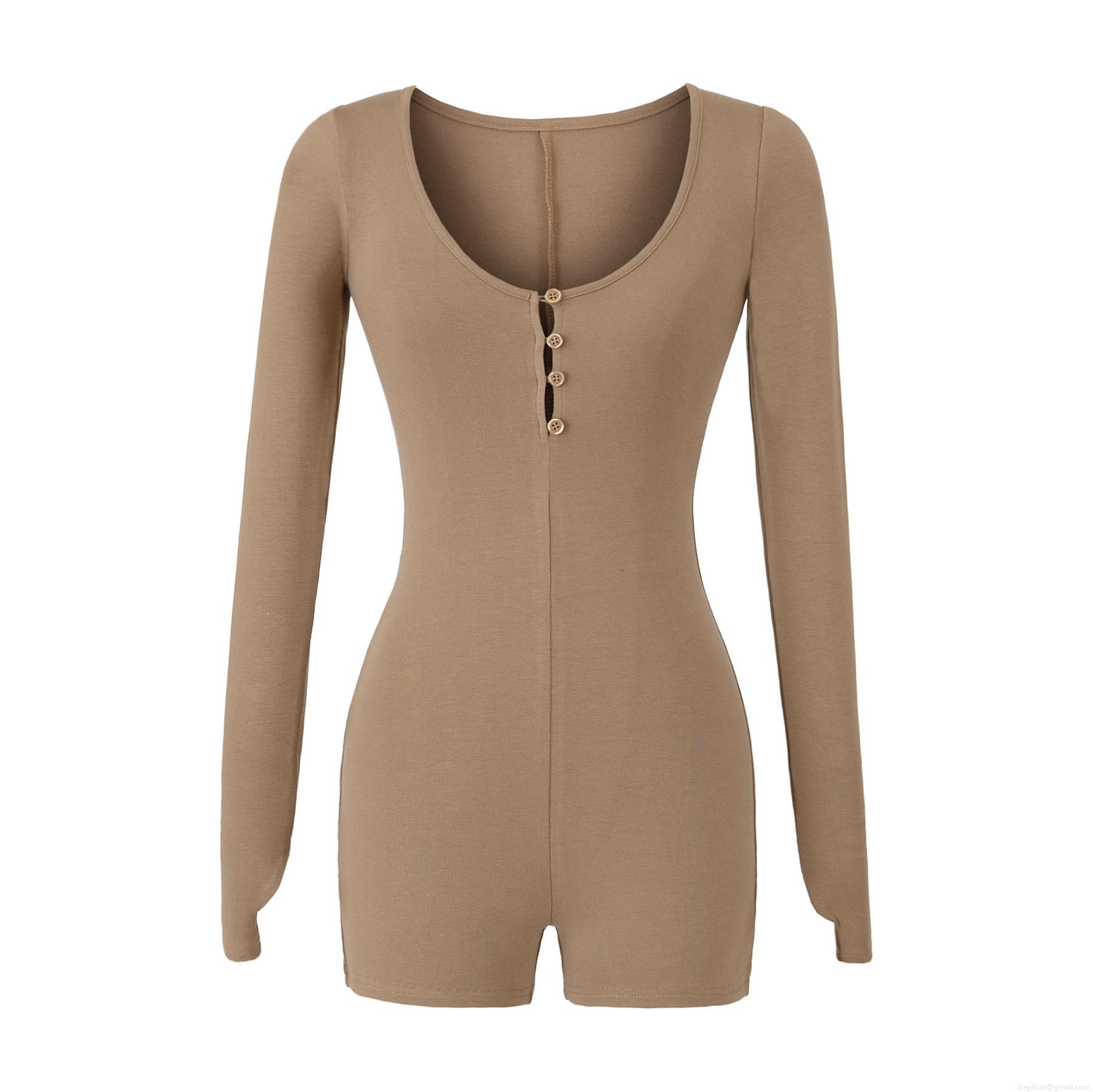 • Sexy Women's Long Sleeve Romper Bodysuit Ribbed Knit Henley Neck Slim Fit Button Down Elastic Bodycon Short Jumpsuit For Daily Yoga Sport Home