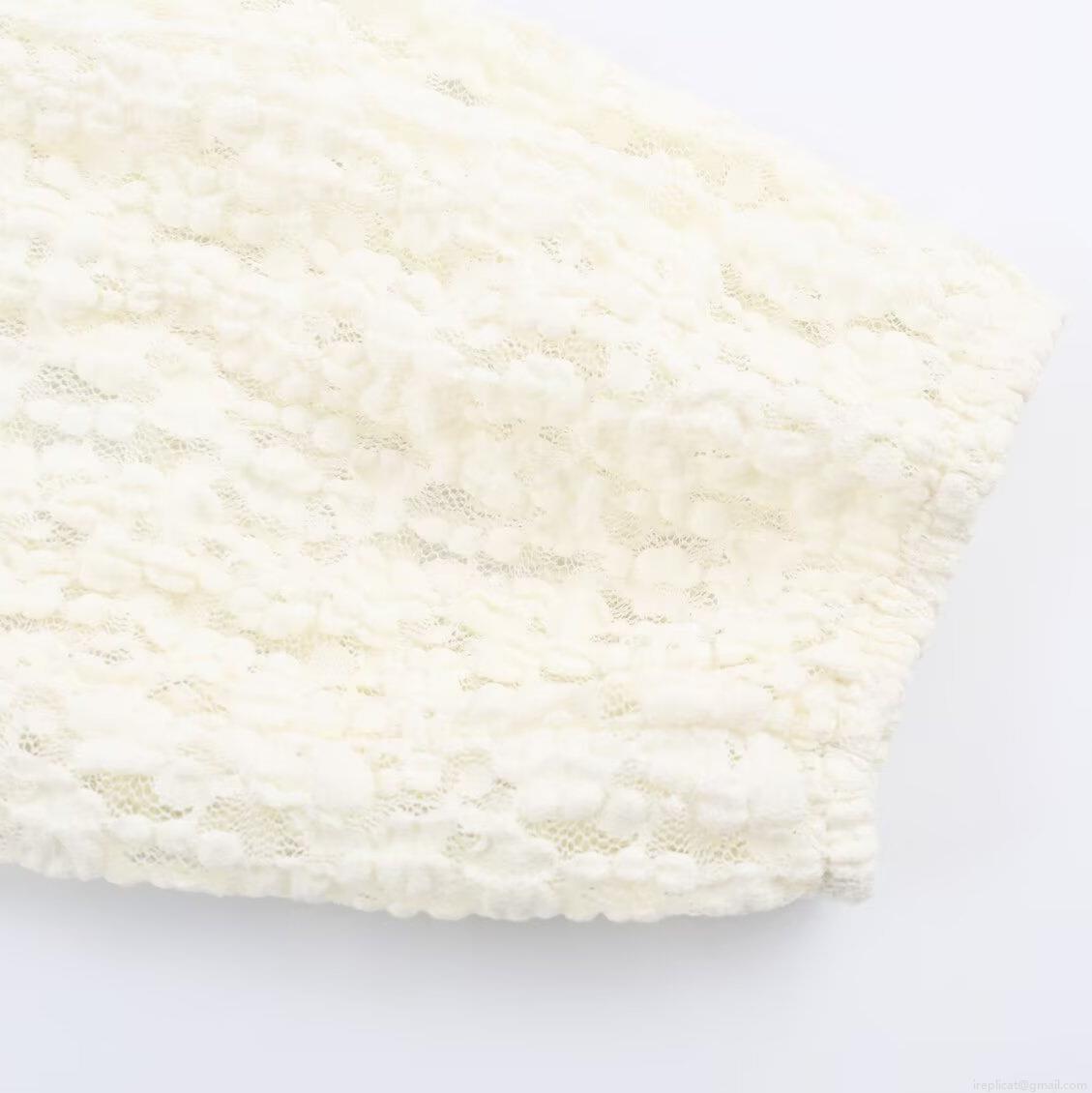 Solid Color, Splice, Bow Decoration, Color Blocking Design, Lace Crochet, High-waisted Pleats
