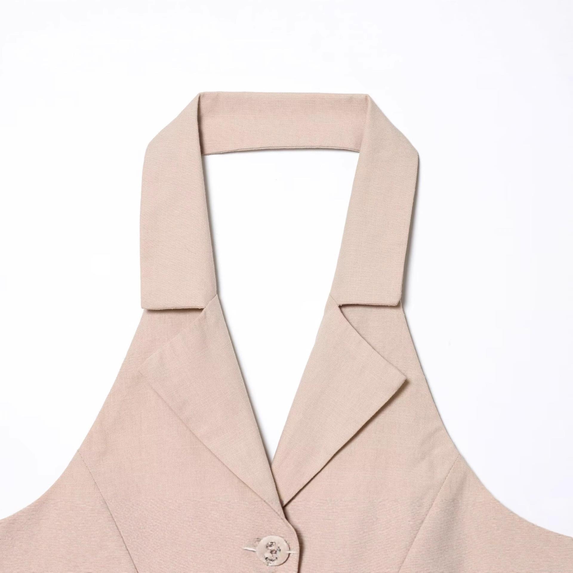 Solid Color, Backless, Neckband Design, Suit Lapel, Matching Belt
