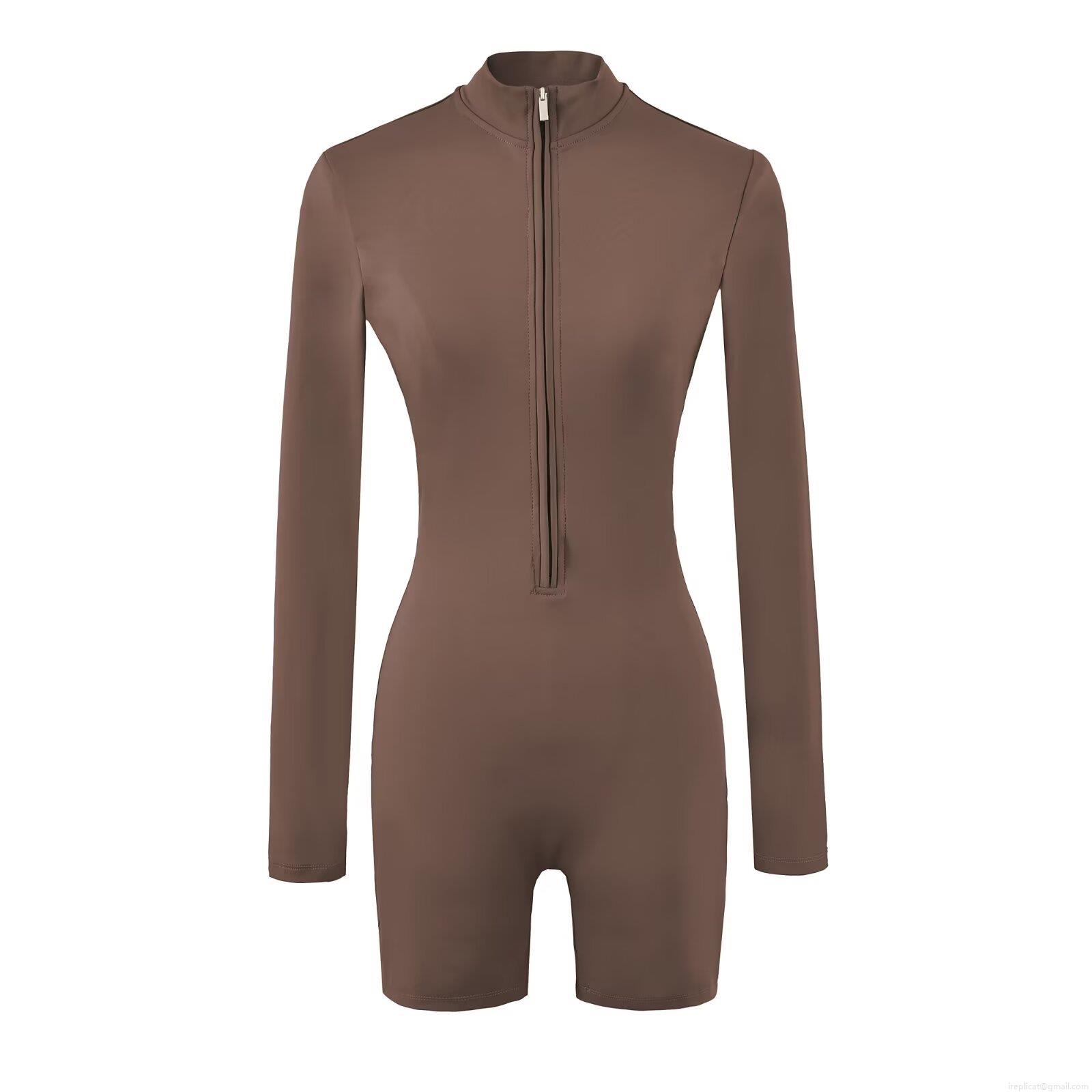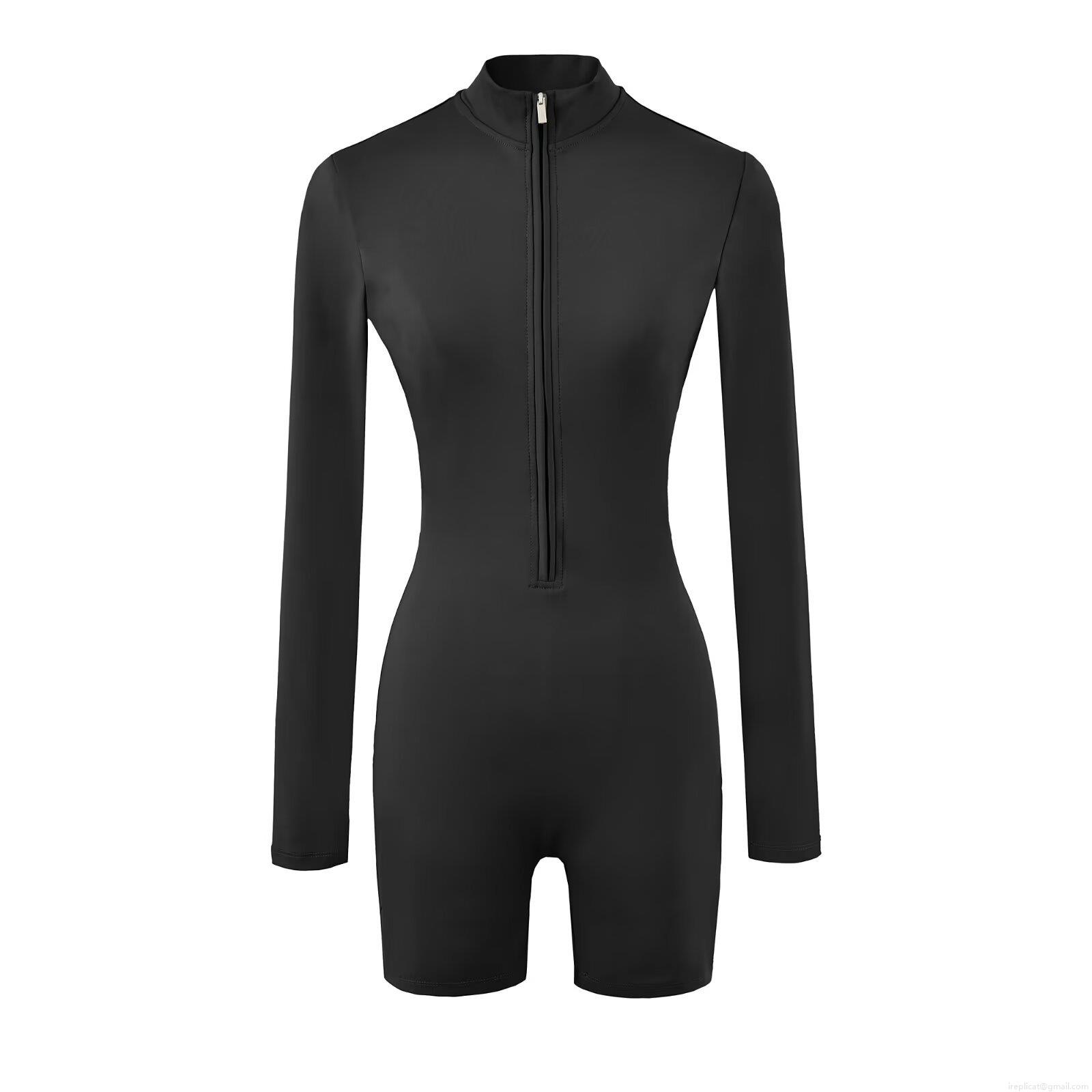 • Women Long Sleeve Slim Fit Half Zip Up Romper One Piece Fitness Yoga Jumpsuit High Elastic Stand Collar Solid Short Jumpsuits For Workout Casual Streetwear
