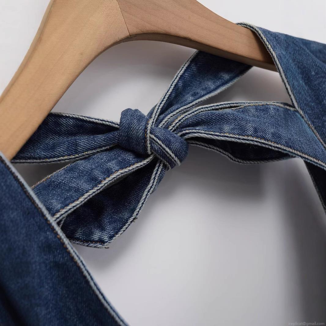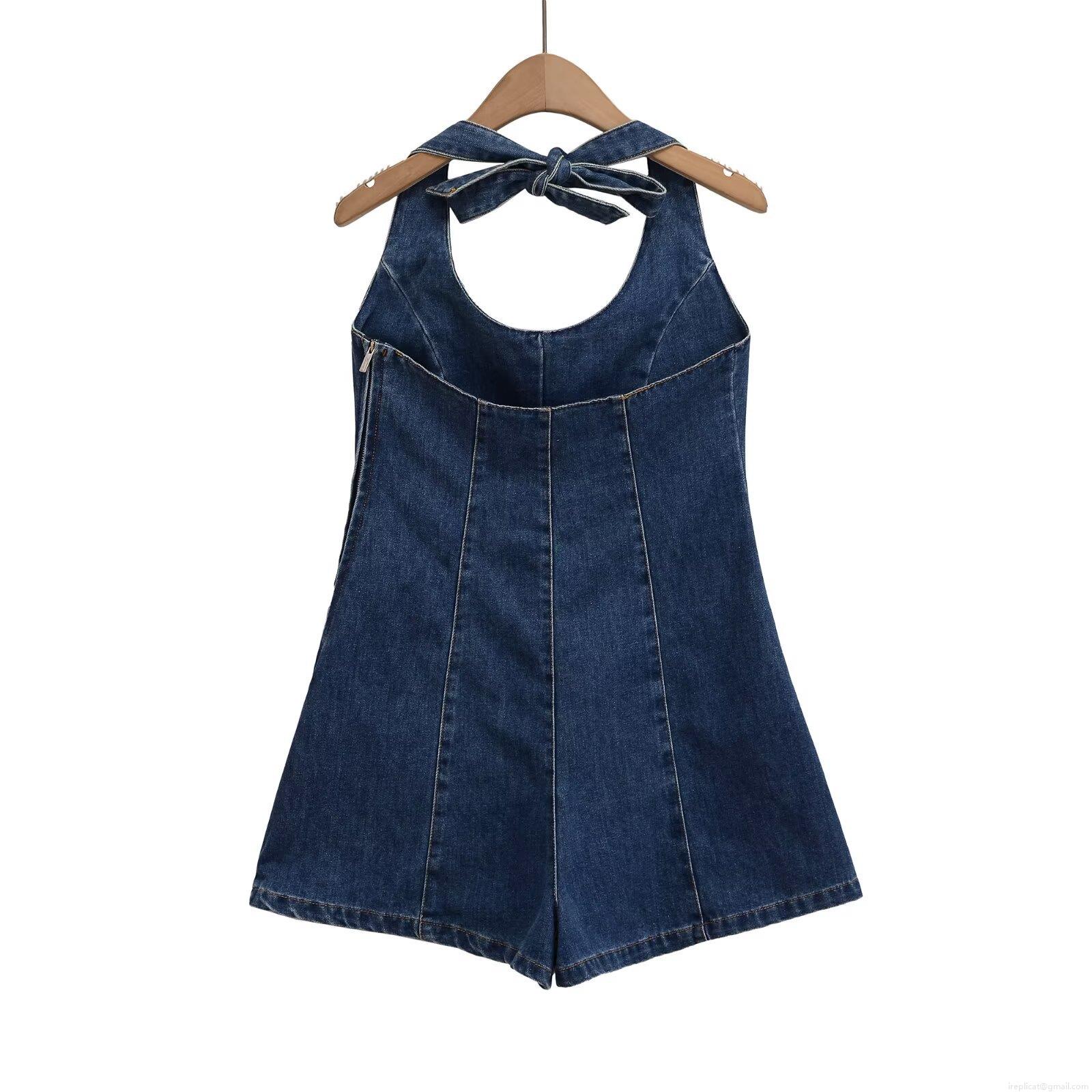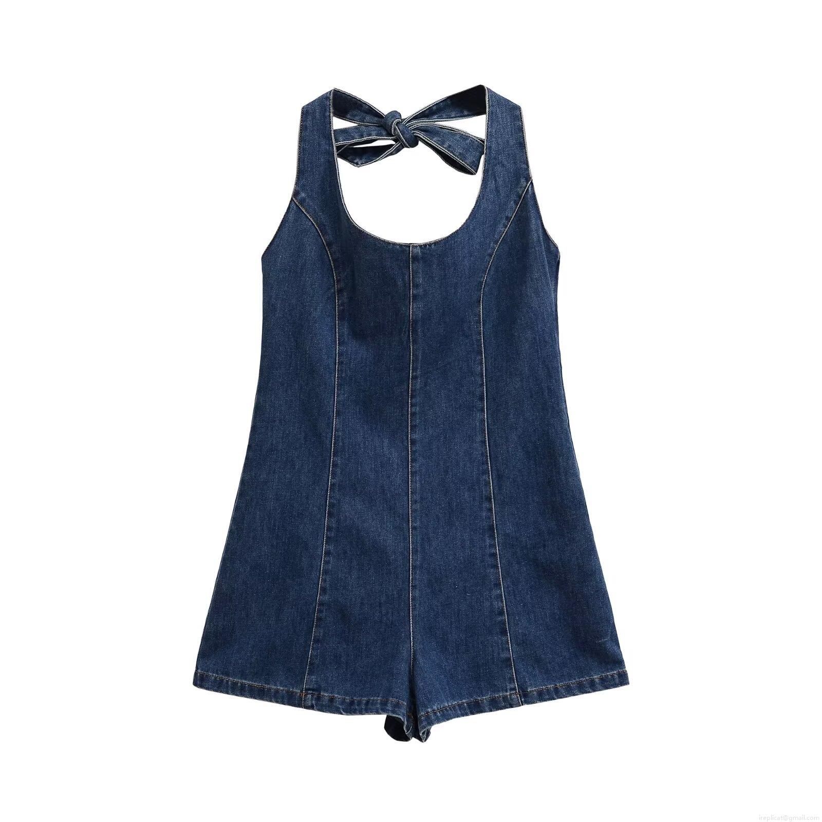 • Women Sexy Backless Halter Denim Romper Summer Sleeveless Bow Tie Neck Low Waist Denim Jumpsuit Shorts Streetwear Fashion Outfits