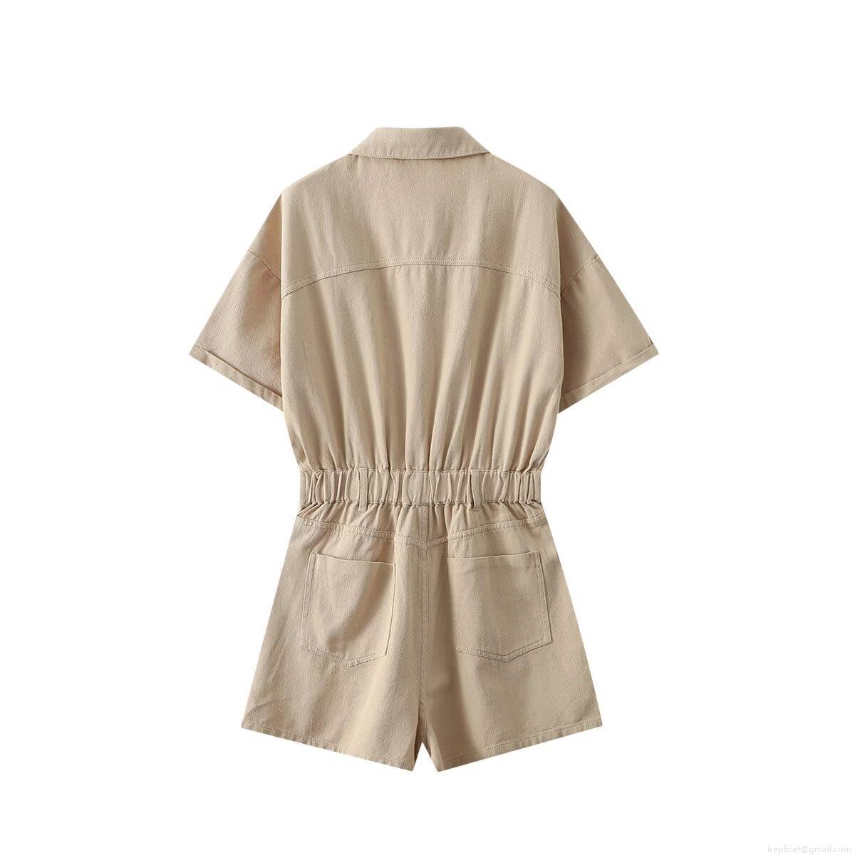 • Women's Casual Utility Short Jumpsuit Cotton Blend Lapel Short Sleeve Single Breasted Romper With Pockets Summer Solid Color Waist Cinched One Piece Fashion Outfit For Women