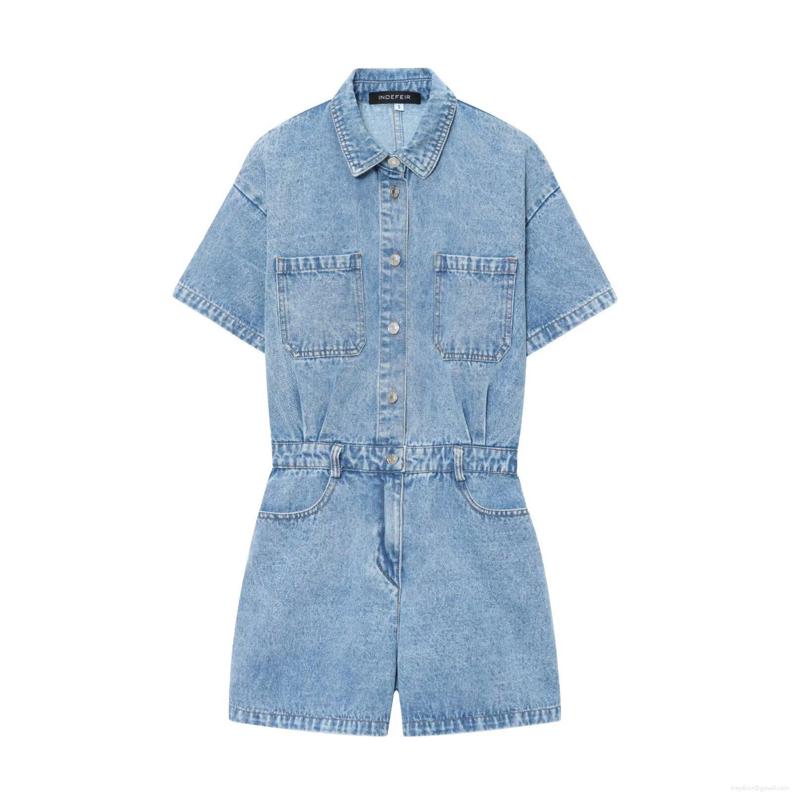 Women's Denim Romper Short Sleeve Single-Breasted Lapel Jumpsuit With Pockets Casual Streetwear One-Piece Play Suit For Women