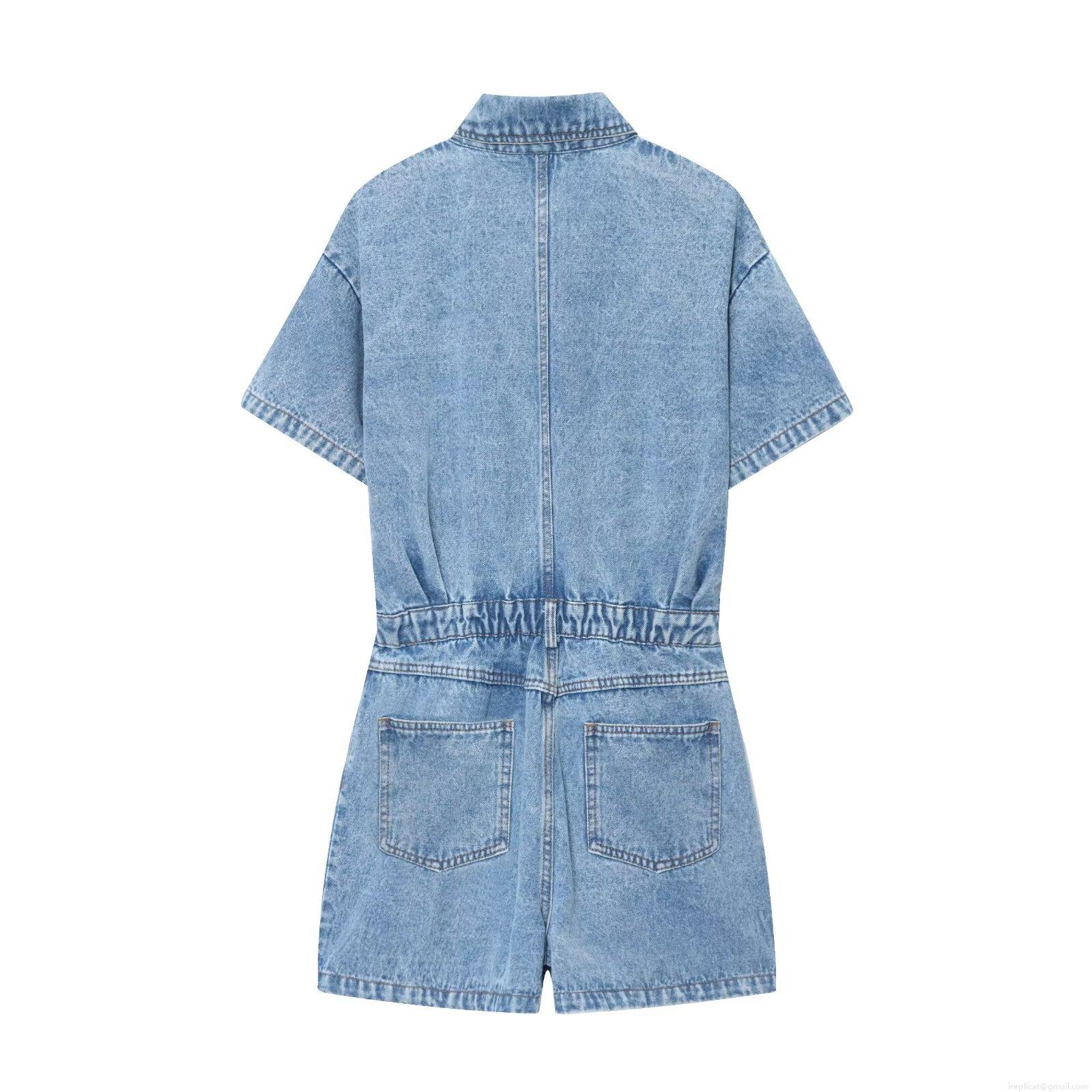 • Women's Denim Romper Short Sleeve Single-Breasted Lapel Jumpsuit With Pockets Casual Streetwear One-Piece Play Suit For Women