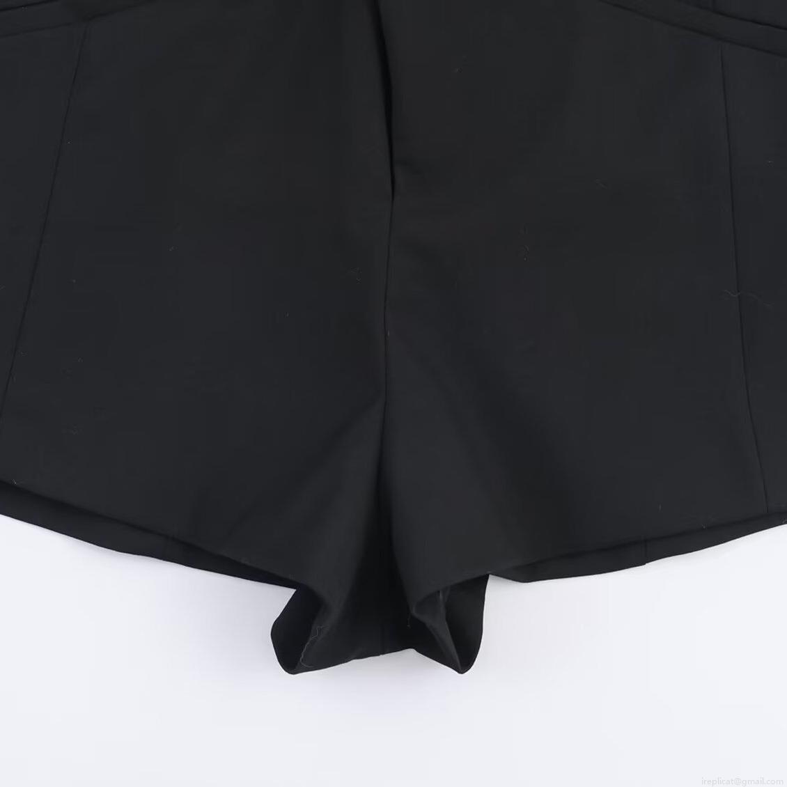 • Women's Elegant Black Blazer Jumpsuit Long Sleeve Deep V-Neck Collarless Shorts Romper With Shoulder Pads Double Breasted Button Slim Fit Woven Polyester Spandex One Piece Playsuit