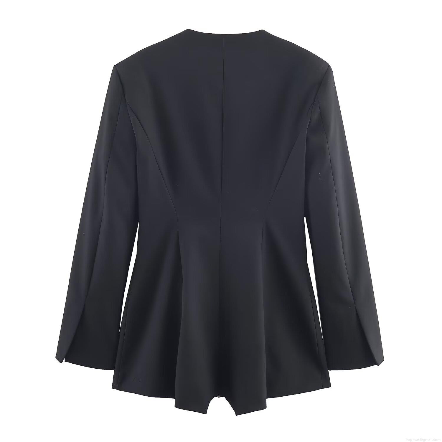 Solid Color, V-neck, Shoulder Pads, Double-breasted, Suit Lapel