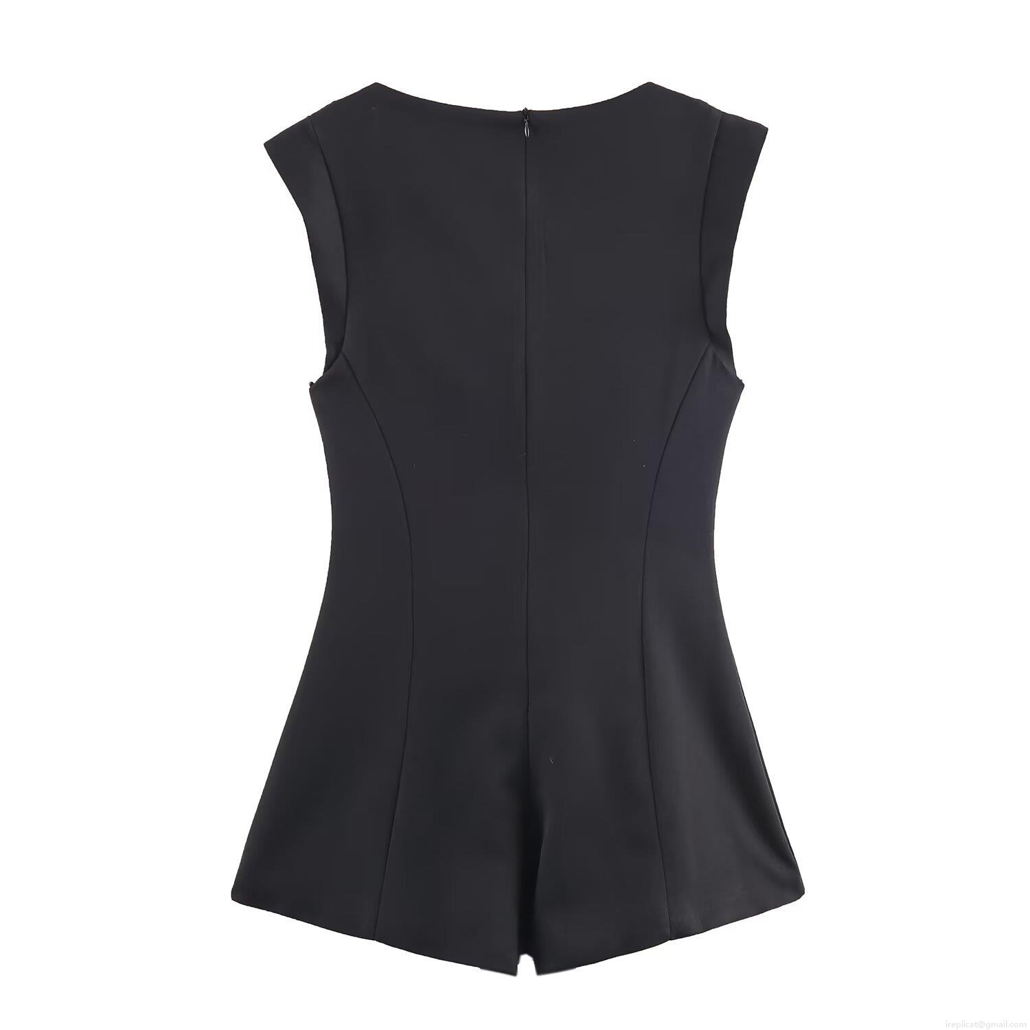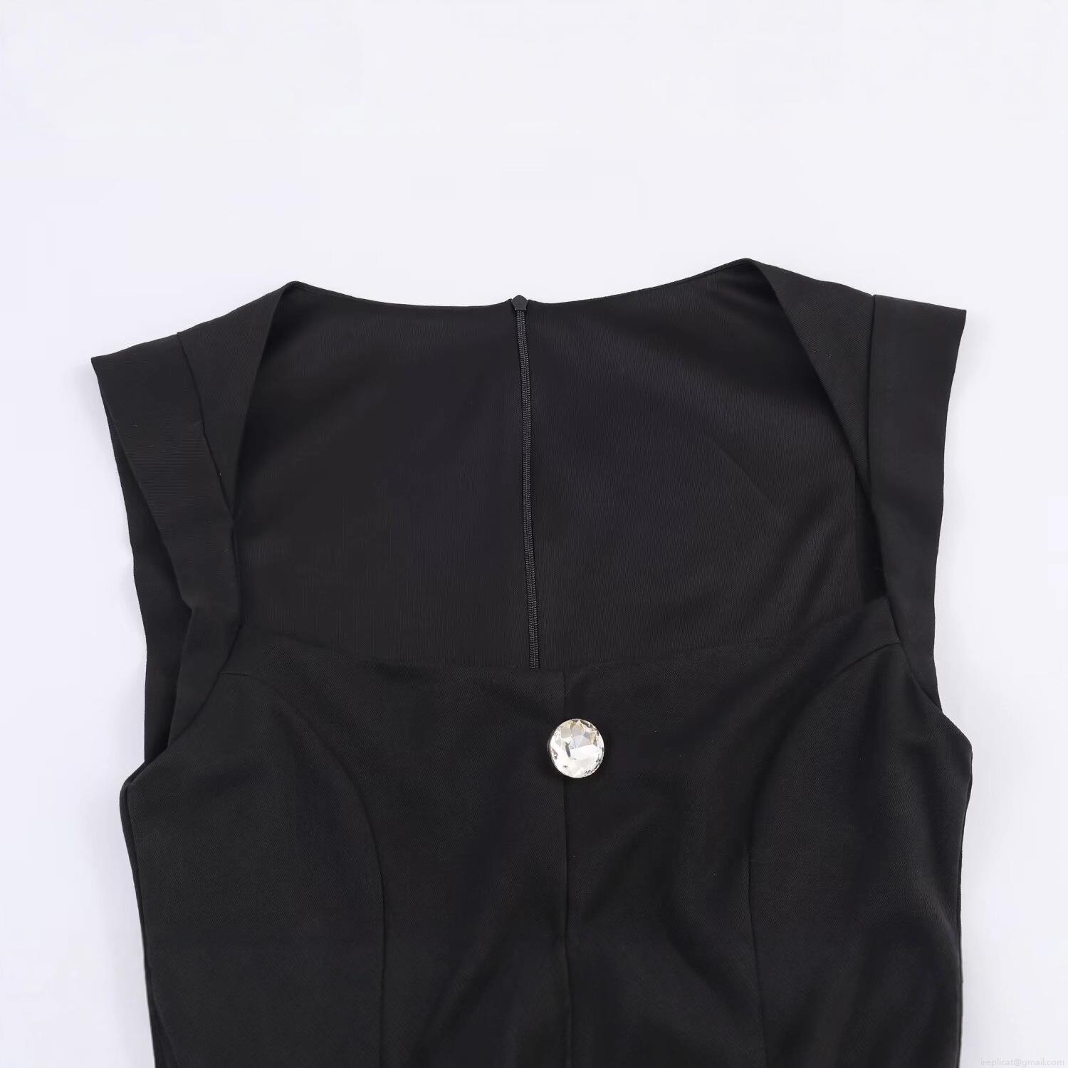 • Women's Elegant Sleeveless Square Neck Jumpsuit With Jeweled Rhinestone Buttons Polyester Slim Fit One-Piece Short Romper For Summer Party Streetwear Casual