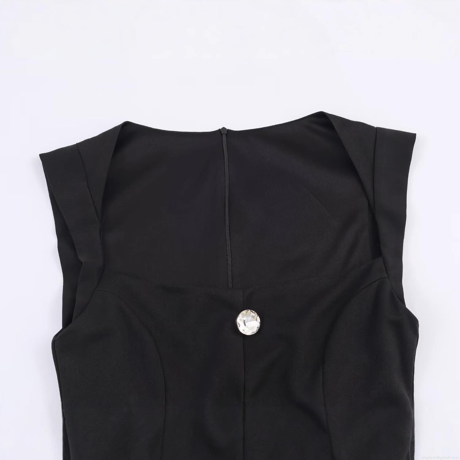 Women's Elegant Sleeveless Square Neck Short Jumpsuit Rhinestone Jewelry Buttons Slim Fit Cotton Blend One Piece Romper Summer Party Clubwear Black
