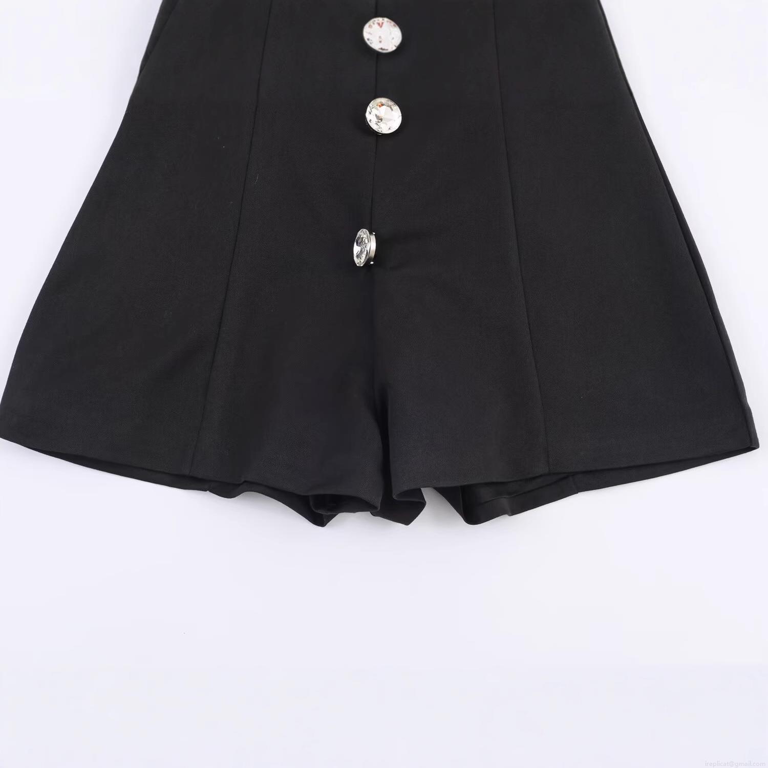 • Women's Elegant Sleeveless Square Neck Short Jumpsuit Rhinestone Jewelry Buttons Slim Fit Cotton Blend One Piece Romper Summer Party Clubwear Black