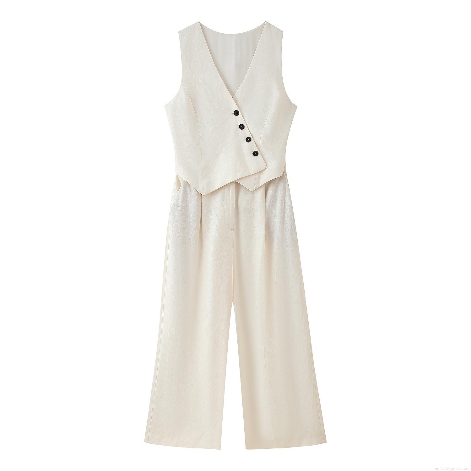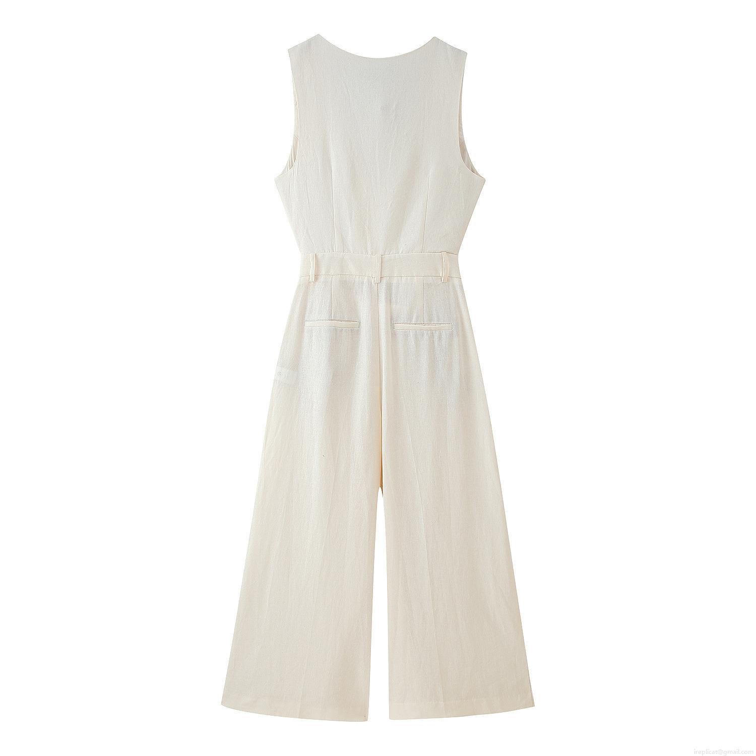 • Women's Elegant Sleeveless V-Neck Jumpsuit Polyester Linen Texture Asymmetric Button Decor Wide Leg Long Pants Office Commute One Piece Playsuit