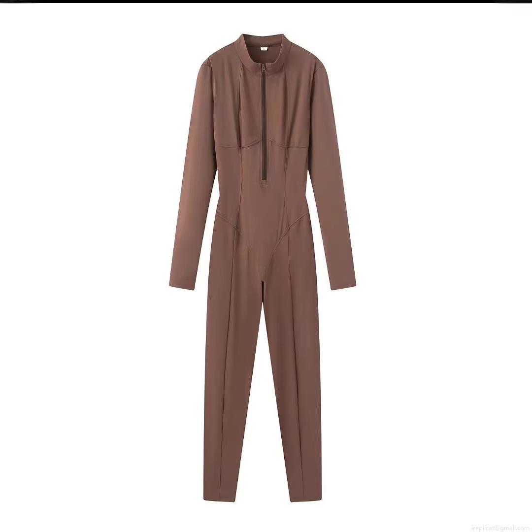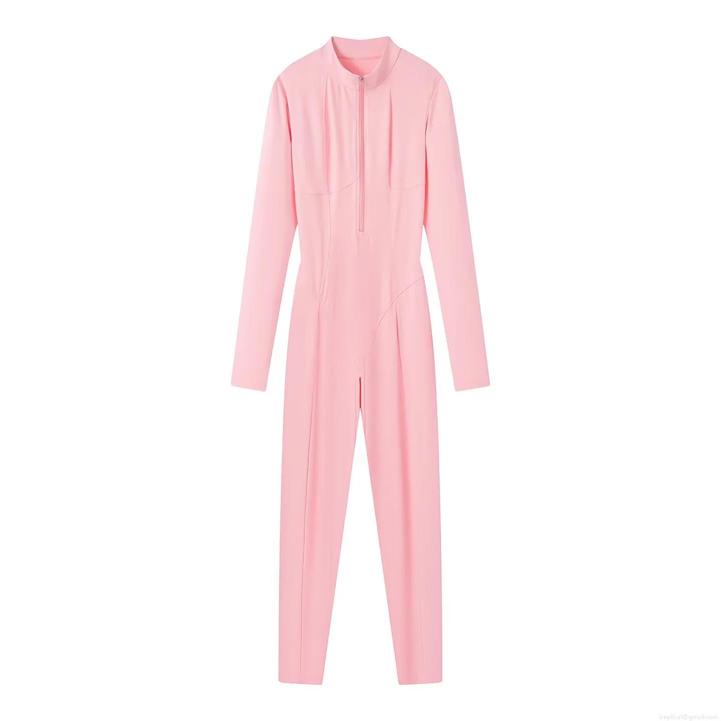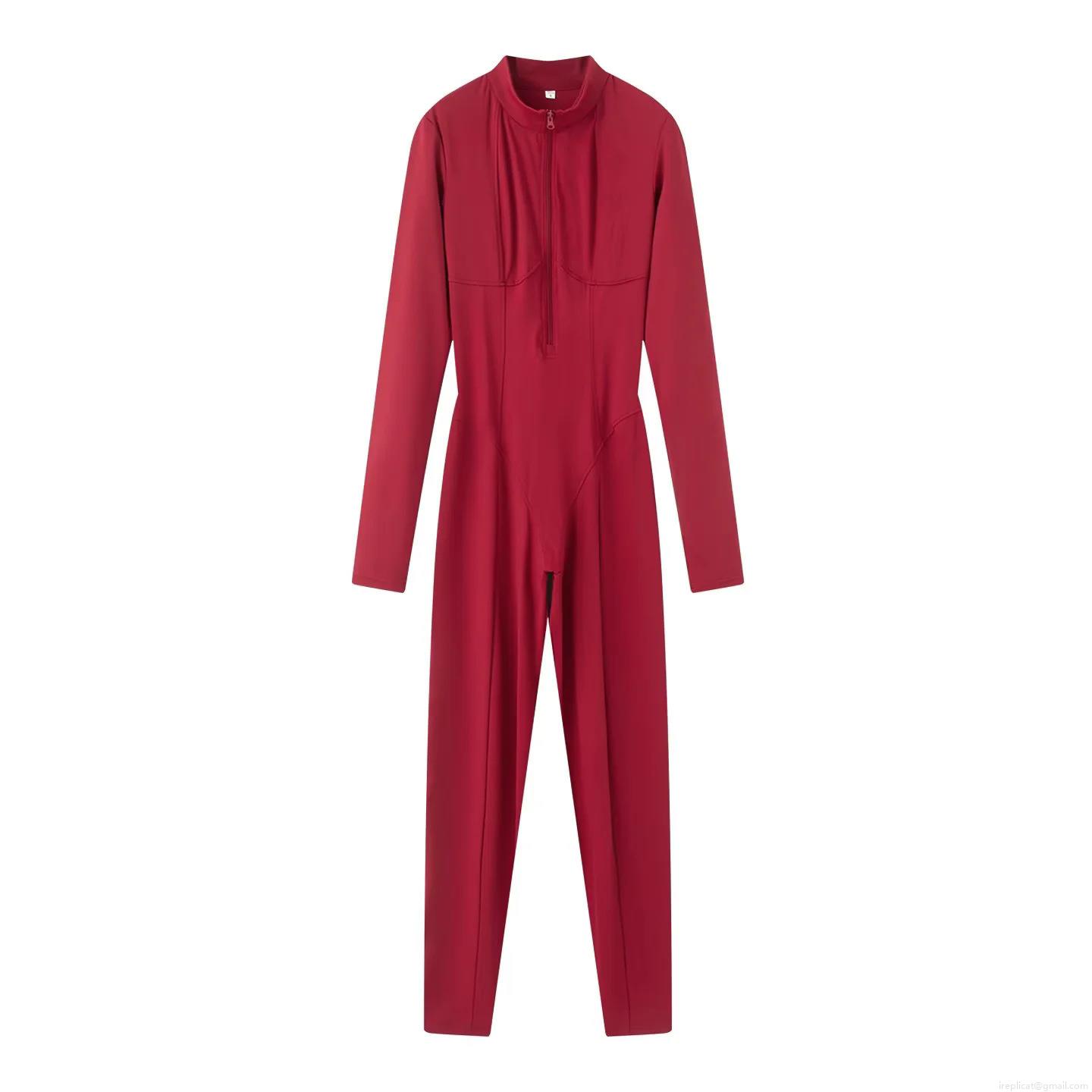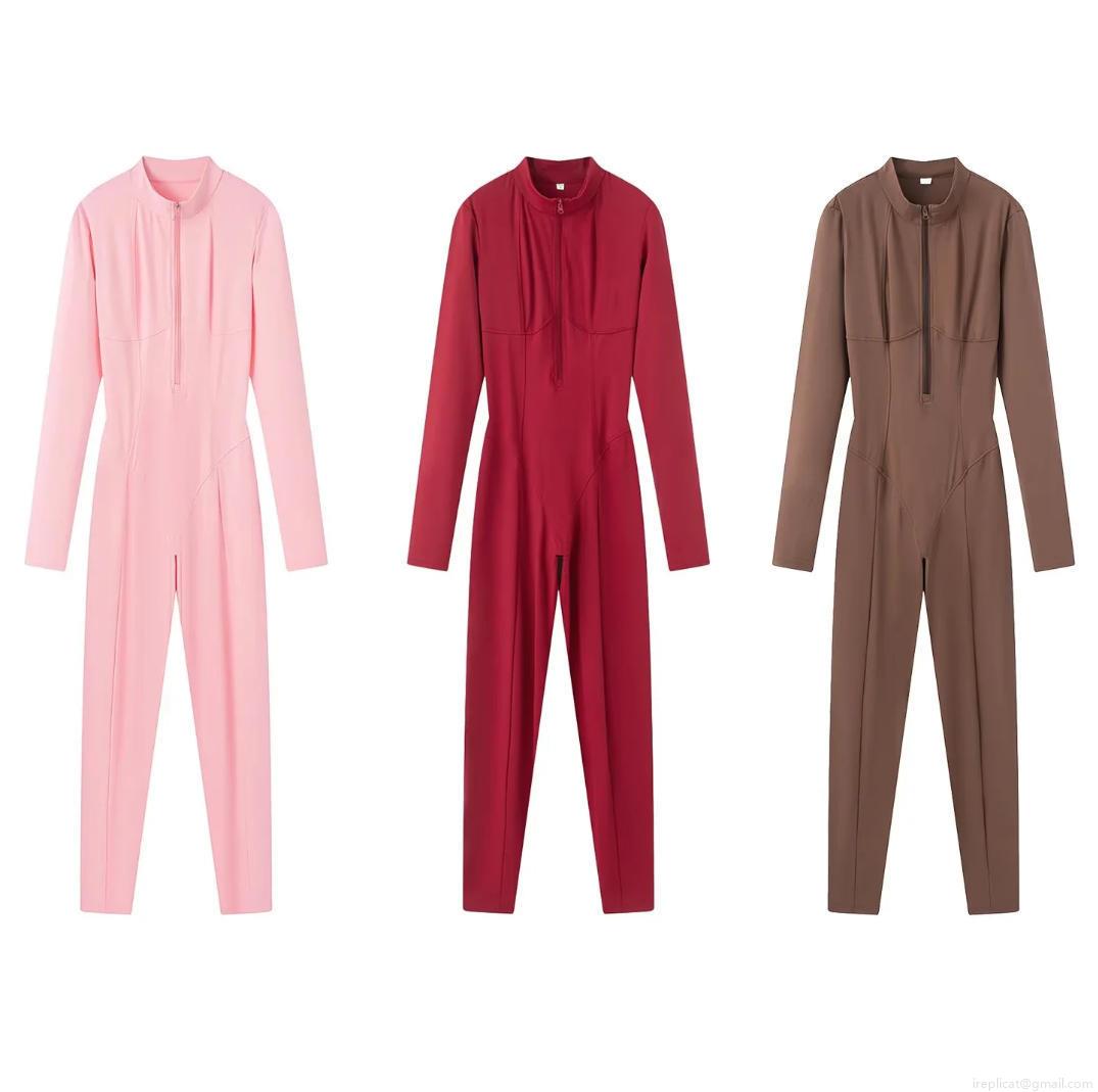 • Women's Long Sleeve Jumpsuits Zip Up Mock Neck Bodycon One Piece Sporty Rompers High Elastic Slim Fit Spandex Bodysuit Outfits For Women