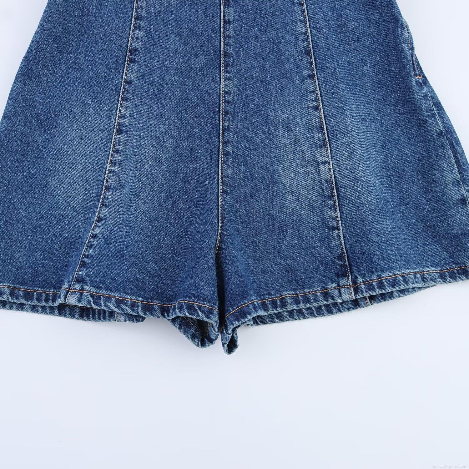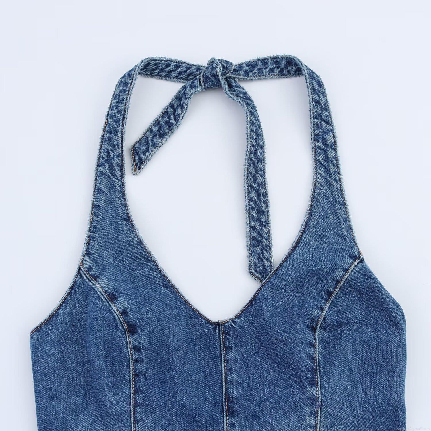 Women's Sexy Backless Denim Halter Jumpsuit Sleeveless Lace-up V-Neck Short Romper Casual Summer Streetwear Blue Denim Jumpsuit