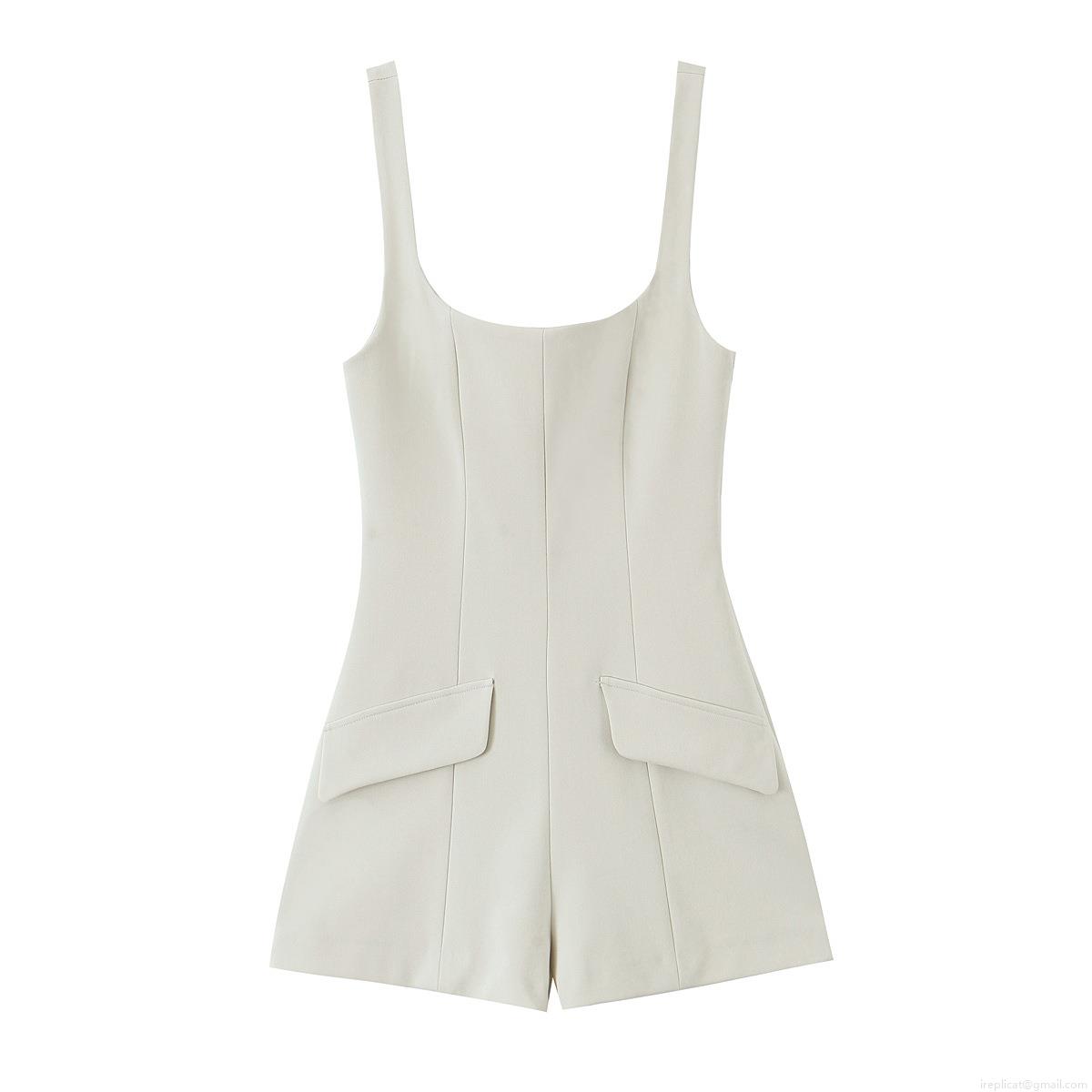 Solid Color, Jumpsuit, Square Collar, Backless Design, Pocket Flap
