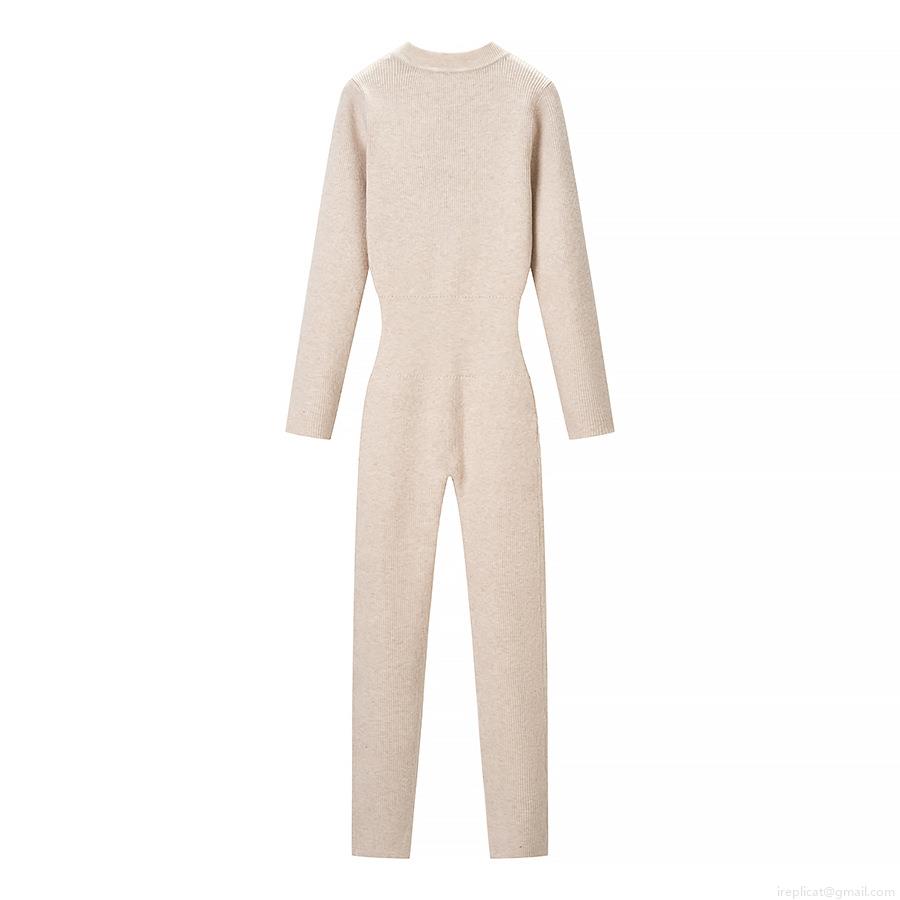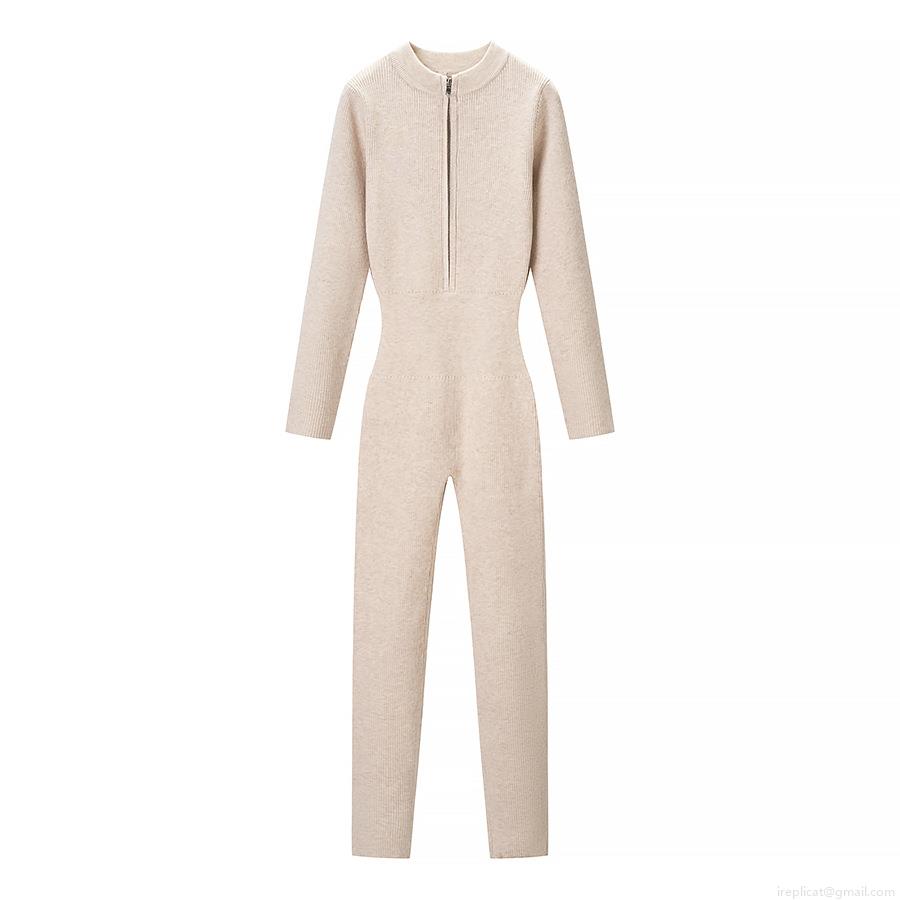 • Women's Sexy Ribbed Knit Jumpsuit Long Sleeve Half Zip Stand Collar Slim Fit Romper Winter Autumn Ribbed Long Sleeve Jumpsuit Outfit For Women