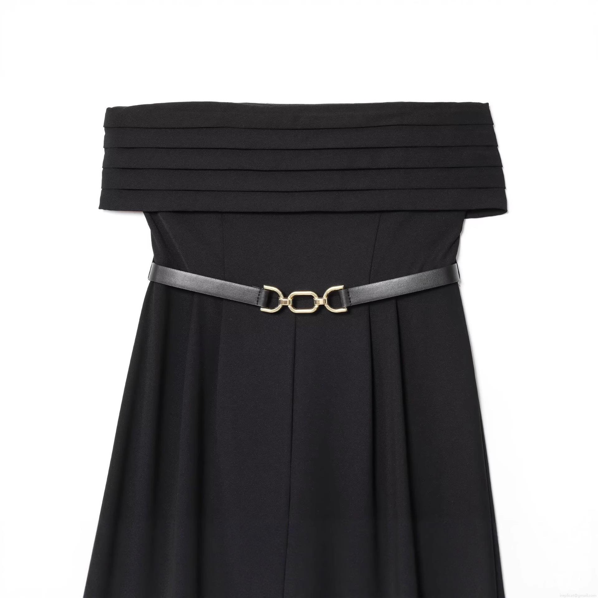 • Women's Sexy Strapless Jumpsuit With Metal Buckle Belt Elegant High Waist Wide Leg Long Pants Romper For Evening Party Clubwear