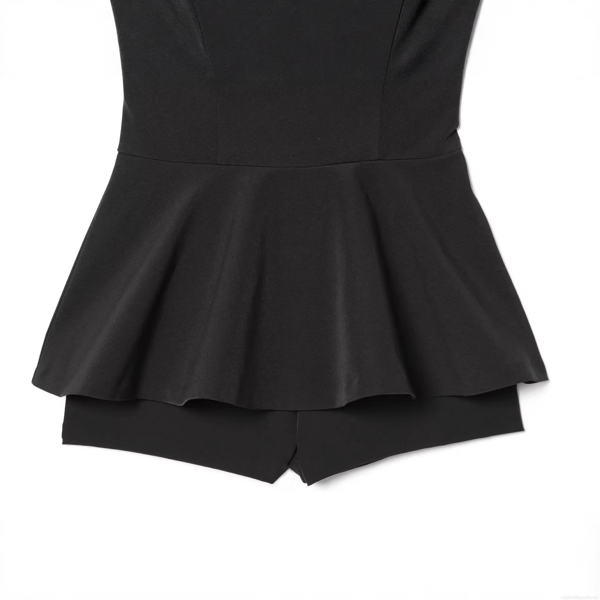 • Women's Sexy Strapless Tube Top Romper With Peplum Waist Solid Black Backless Polyester Jumpsuit Summer Club Party Short Jumpsuits For Ladies