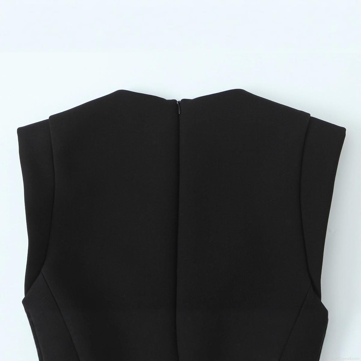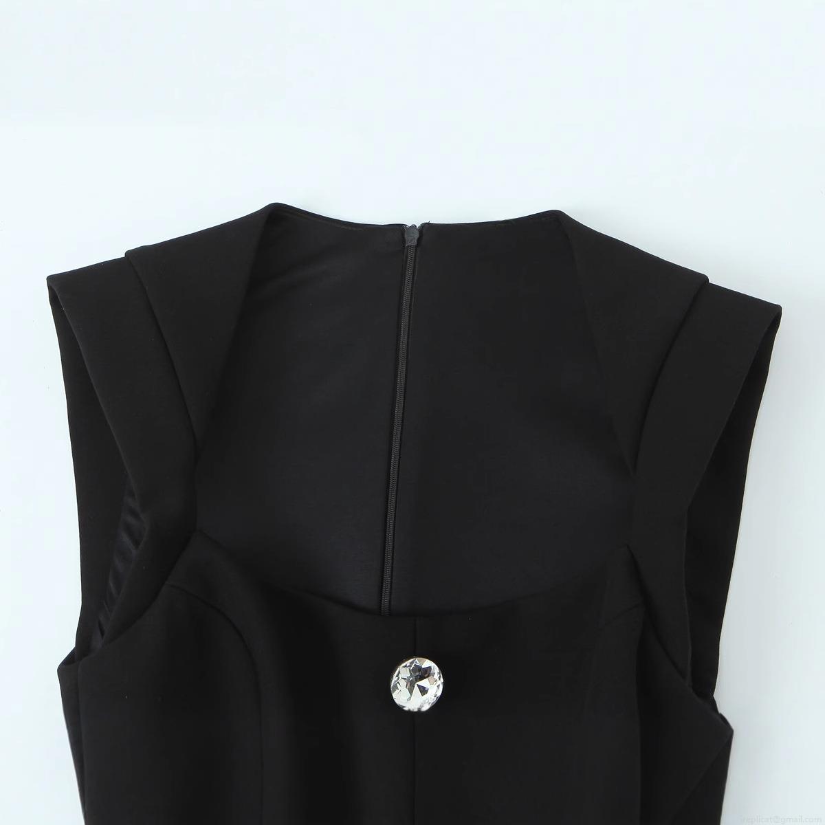 • Women's Sleeveless Rhinestone Button Denim Romper Elegant High Waist Jumpsuit With Back Zipper Solid Black Slim Fit Short Jumpsuit For Summer Party Dating