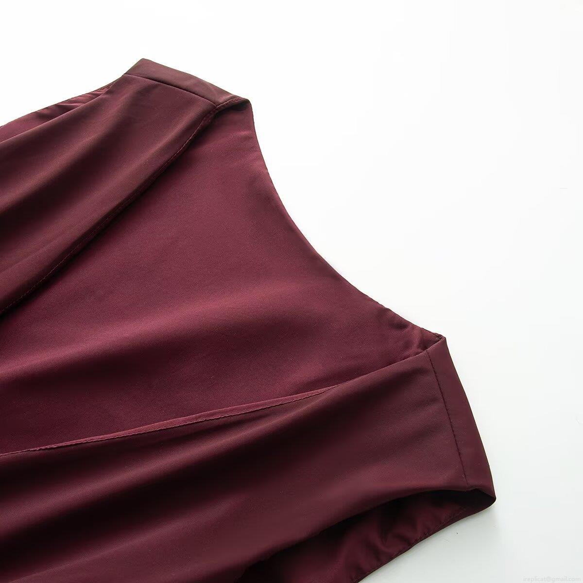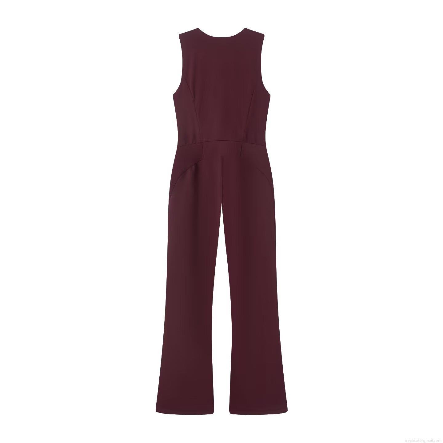 • Women's Sleeveless V-Neck Slim Fit Jumpsuit Spandex Elegant Solid Burgundy Front Zipper Wide Leg One Piece Ski Style Fashion Clubwear Romper