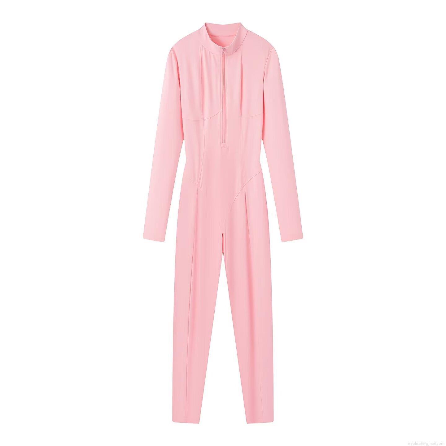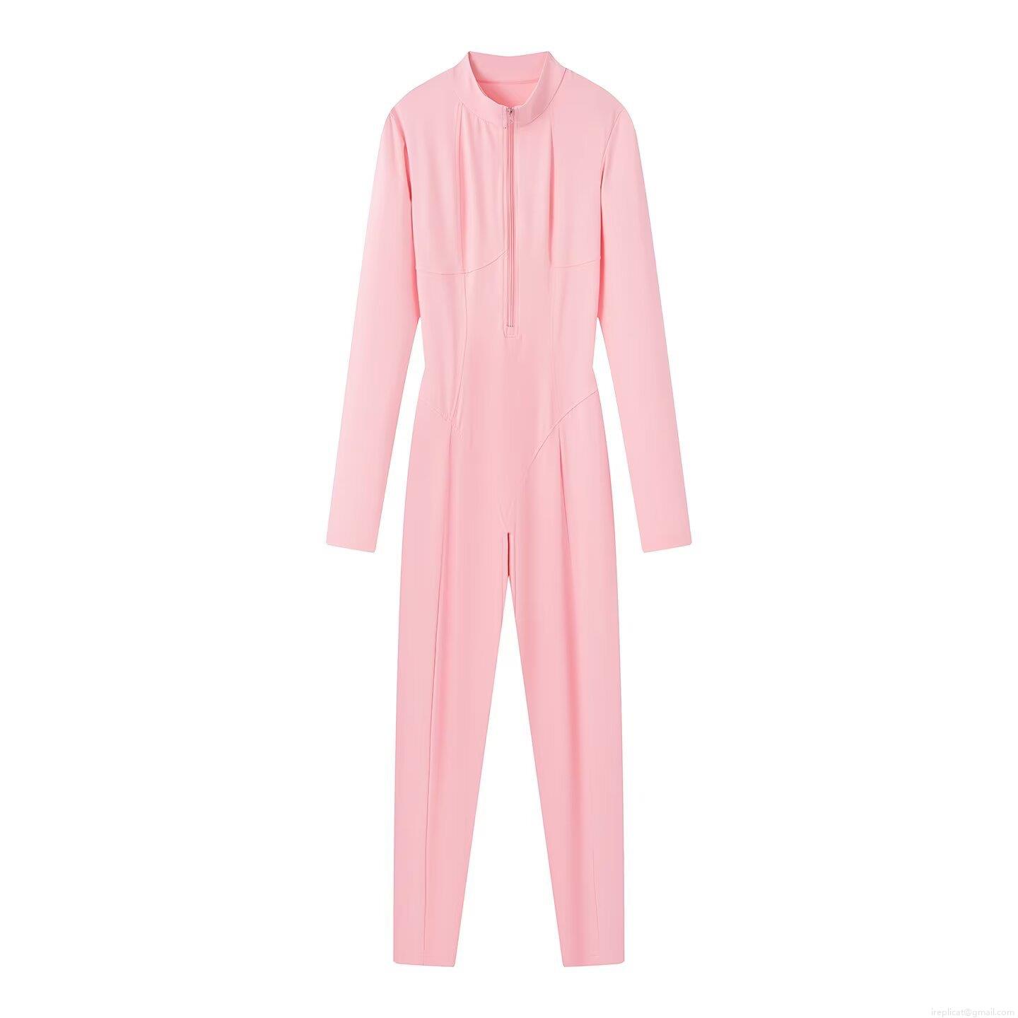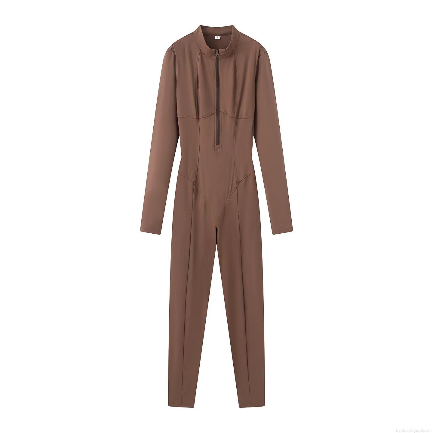 • Women's Slim Fit Sporty Yoga Jumpsuit Long Sleeve Cotton Blend Catsuit With Zipper Mock Neck One Piece Bodycon Romper For Activewear Streetwear