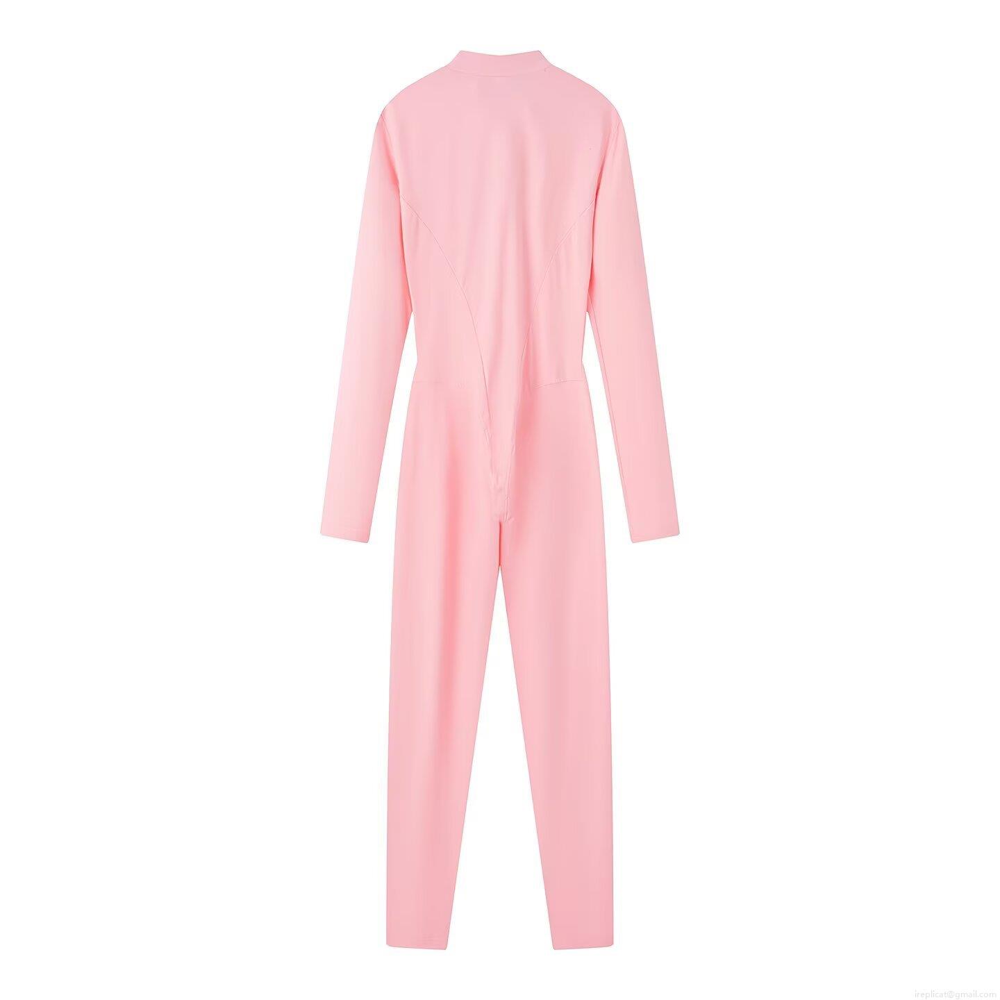 • Women's Sporty Long Sleeve Jumpsuit Spandex Blend Slim Fit Shaping Yoga Suit Solid Color Zip Up Stand Collar Gym Fitness Casual One Piece Bodysuit