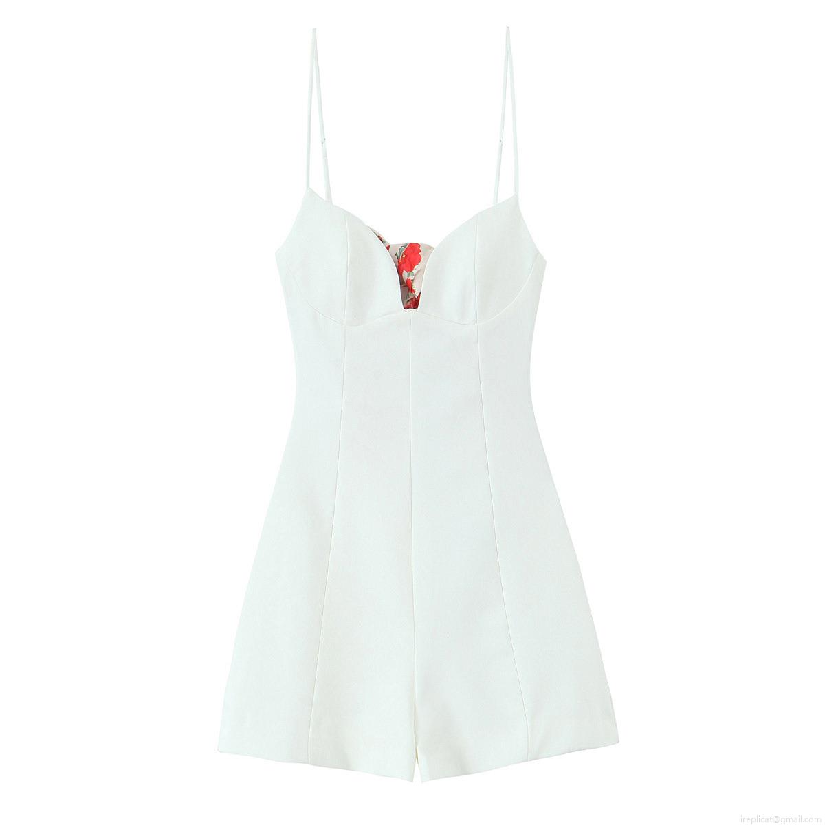 • Women's Summer Sexy Strappy Jumpsuit Floral Print Silk Scarf Tie Sleeveless Polyester Spandex Short Romper For Beach Party Vacation Slim Fit