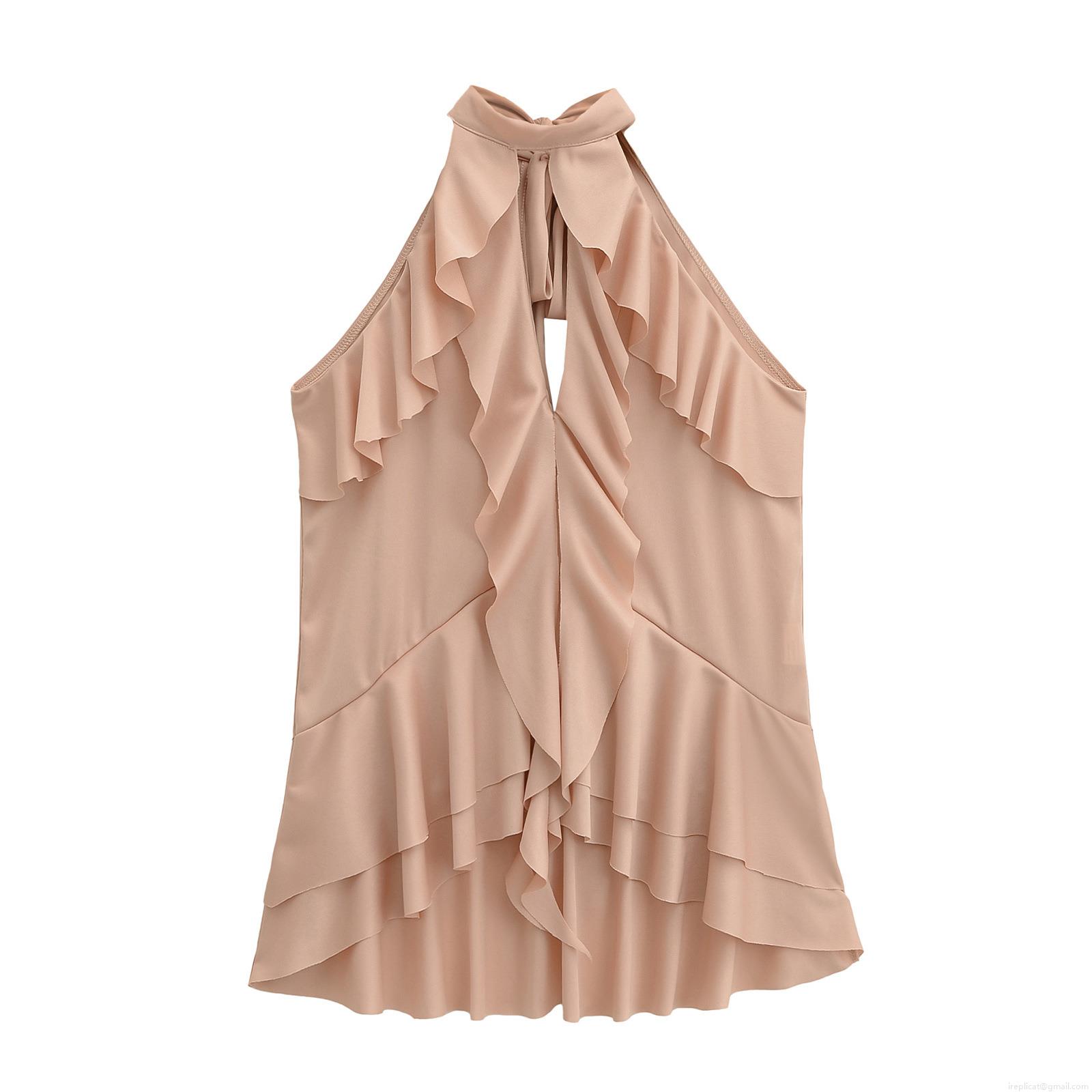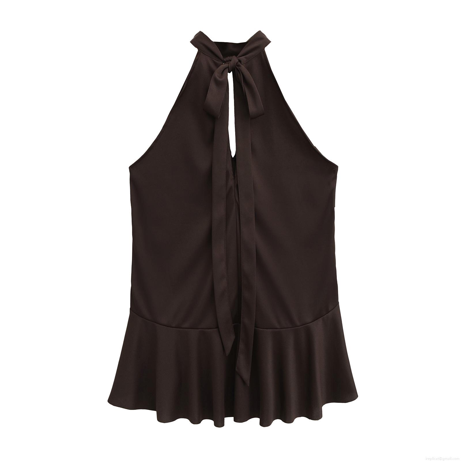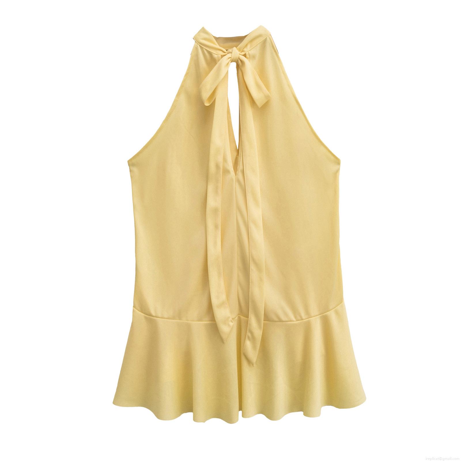 • Women's Layered Ruffle Halter Neck Tank Top Sleeveless Bow Tie Backless Polyester Solid Color Sexy Slim Fit Top For Summer Party Clubwear
