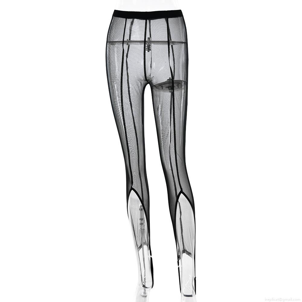 Sexy Women See-through Mesh Stirrup Leggings High Waist Polyester Spandex Solid Color Slim Fit Cut-out Leggings For Club Party Nightwear