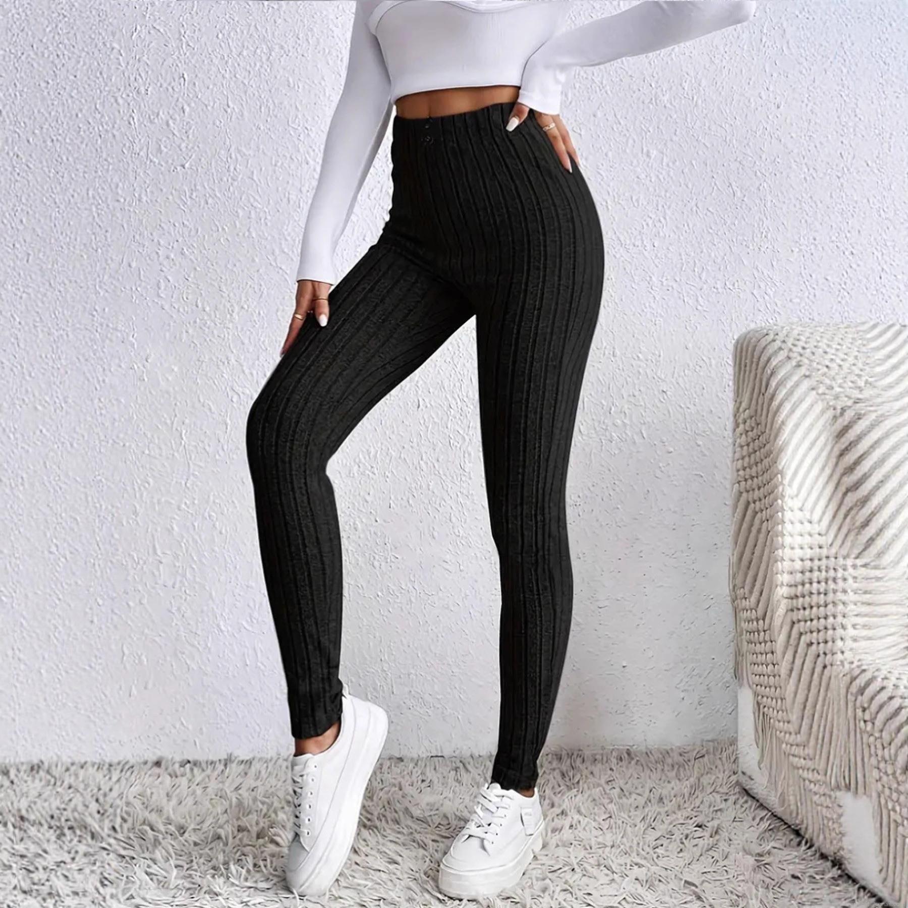 • Women's High Waisted Ribbed Leggings Slim Fit Double Button Knitted Long Pants Plus Size Thick Thermal Trousers for Daily Casual Autumn Winter