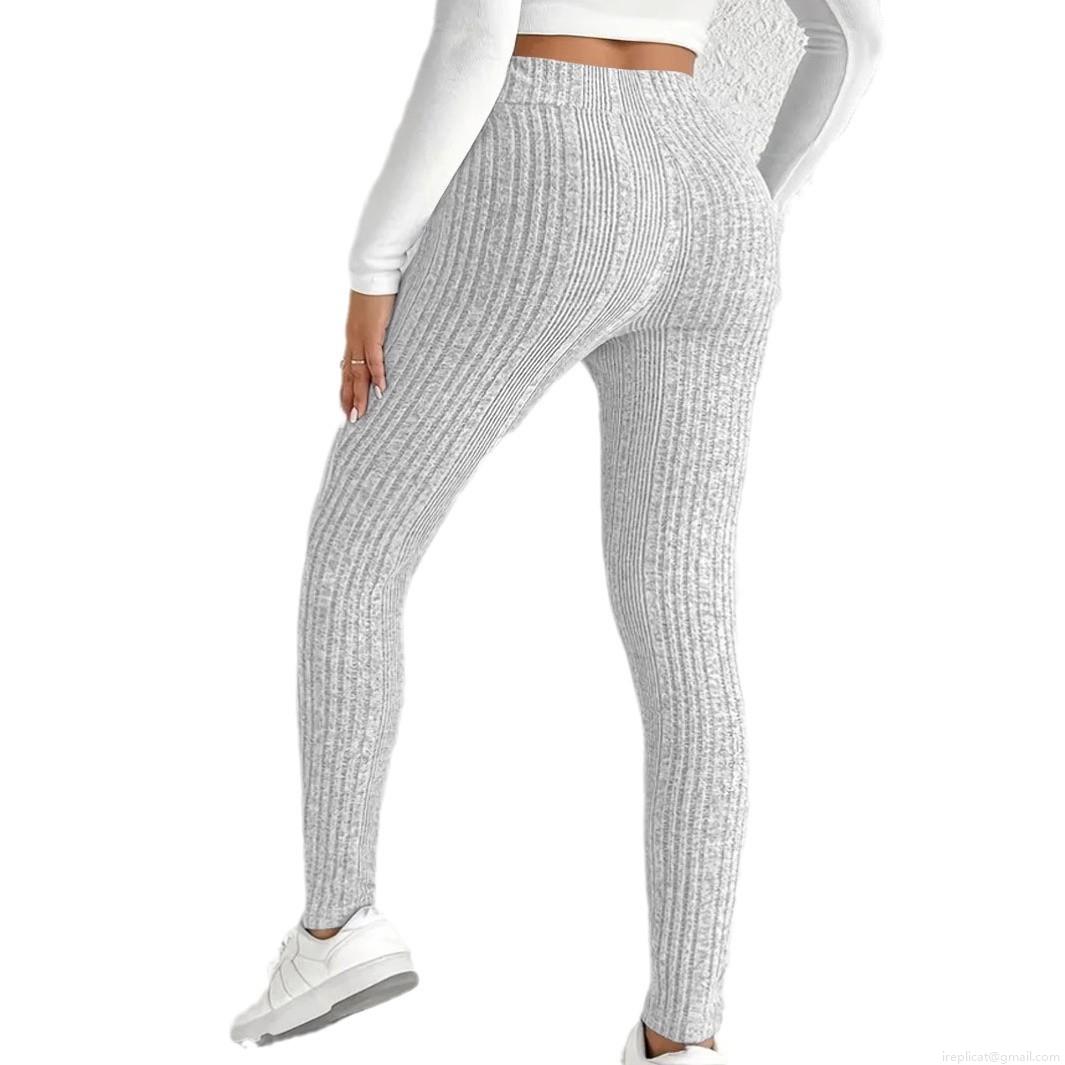 • Women's Ribbed Knit Leggings High Waisted V-Waist Slim Fit Striped Athletic Yoga Pants Casual Daily Wear Trousers